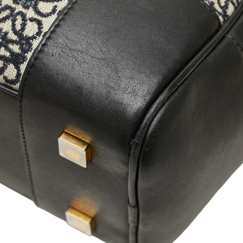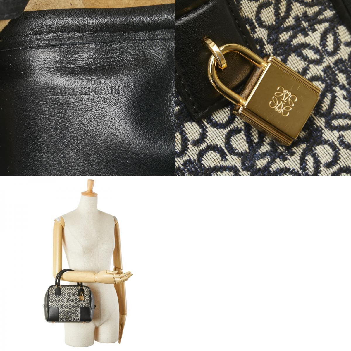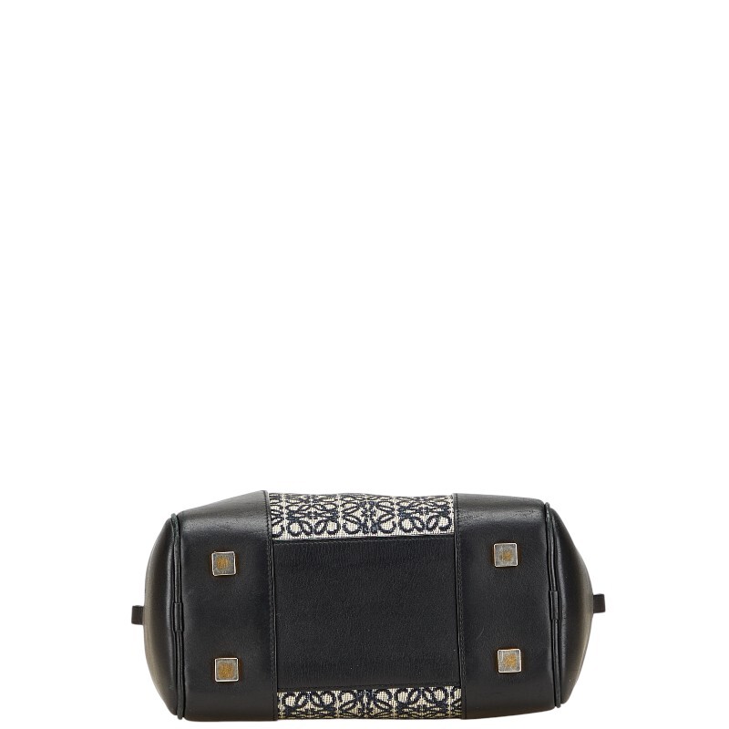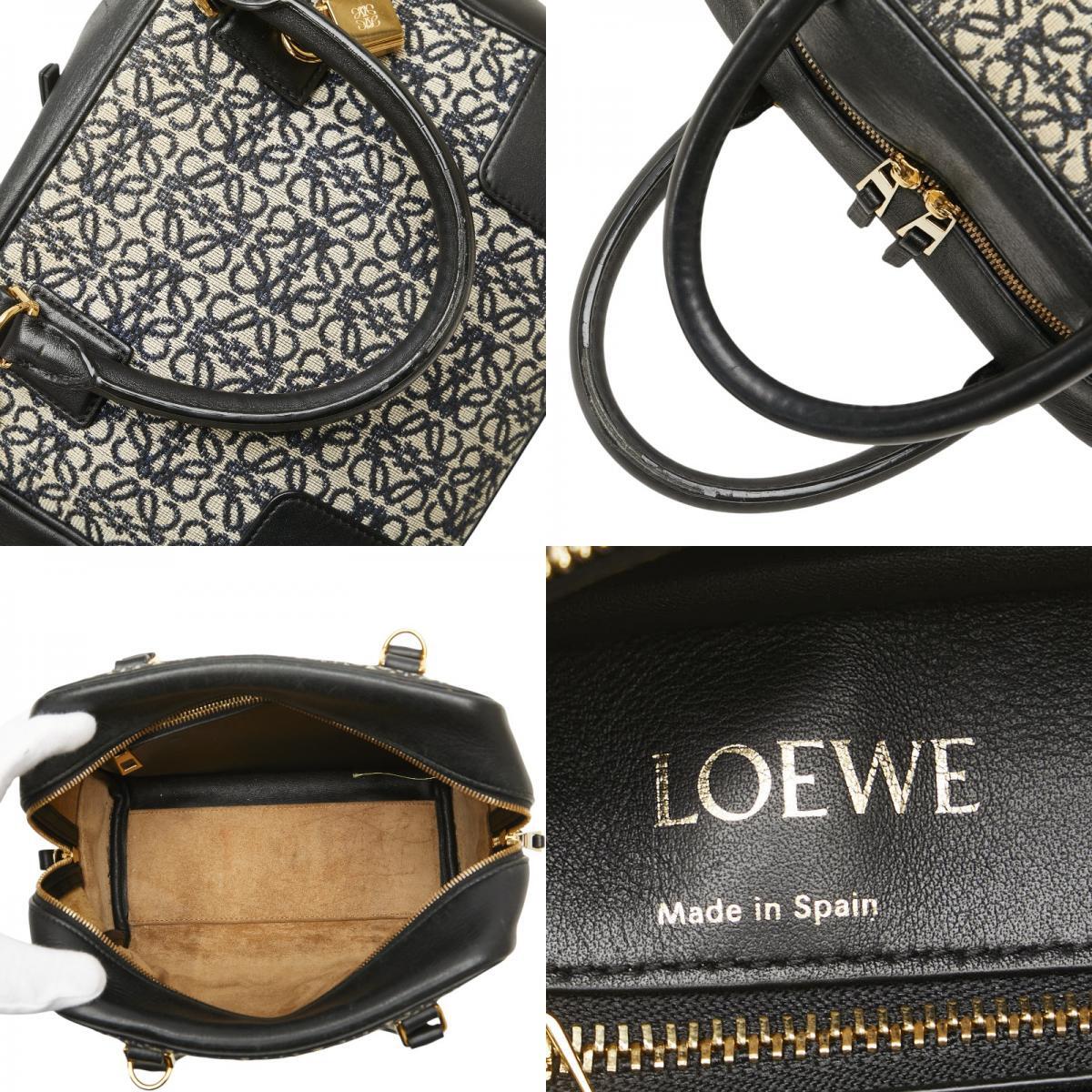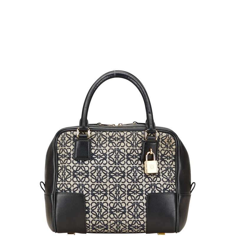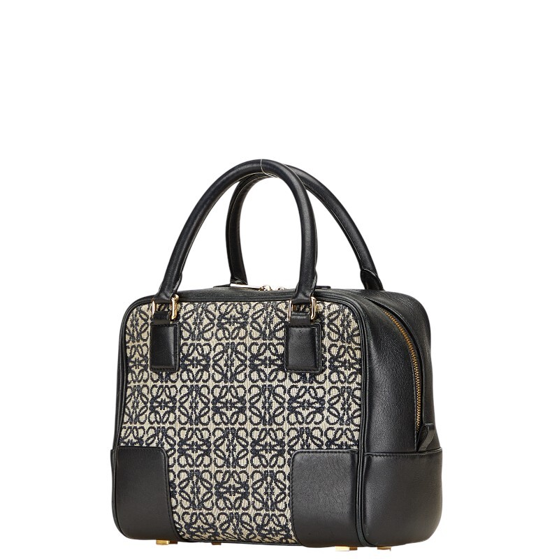 ロエベ アナグラム アマソナ19 スクエアバッグ ハンドバッグ ブラック キャンバス レザー レディース LOEWE 【中古】