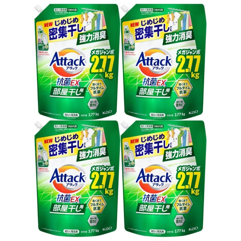 アタック抗菌EX 洗濯洗剤 詰め替え 部屋干し用 2900g つめかえ用 大容量ぎゅうぎゅうつめこみ洗いでも強力洗浄。(お洗たくの際に洗たく物を入れすぎないようにしてください)洗浄強化成分2倍プラッシュクリアの香りつめかえ 詰替え 詰替 つめかえ用