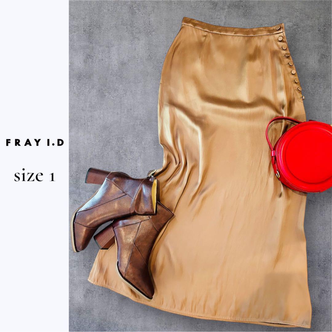 #FRAYID #フレイアイディー #ロングスカート #サテン #キャメル #Mサイズ相当 #光沢 #美シルエット