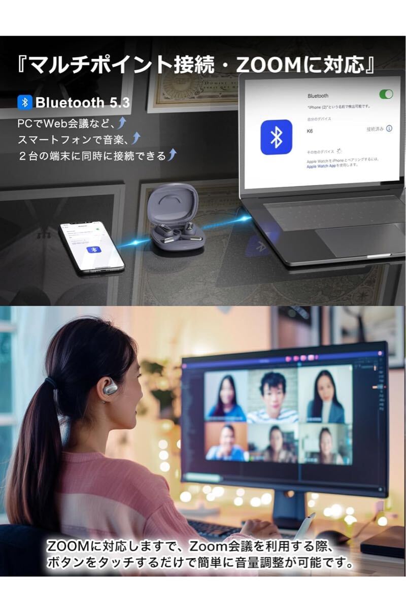【安定な装着感・耳に優しいフィット】「K6」OWSイヤホンは耳かけ式にしております。耳たぶの後ろや耳の形にフィットさせるデザインです。そのため、ランニングやサイクリングなど激しい運動をしてもイヤホンが外れにくく、安定した装着感を提供します。耳の外側に装着されるため、内部の圧力や密閉感が少なく、より自然な音響体験をもたらします。メガネかけている方も気軽に使用できます。また、イヤホンの重さは片耳わずか10gで、肌に触れる部分はシリコン素材にしており、耳への負担を軽減します。