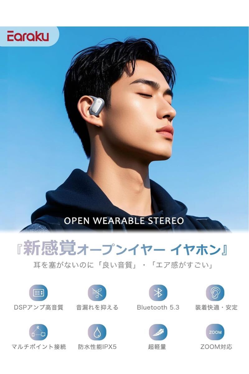 【2025音質特化・新次元のオープン型】 Earaku (イアラク) オープンイヤー イヤホン ワイヤレスイヤホン 超軽量 耳を塞がない 耳掛け式 究極のフィット感 イヤフォン 骨伝導の革新 DSP機能 オープンイヤーヘッドホン 業界トップ音質 指向性音伝送技術 音漏れ無し 日本語音声 Bluetooth5.3/マルチポイント接続/ENC通話ノイズリダクション (