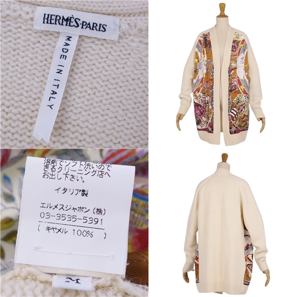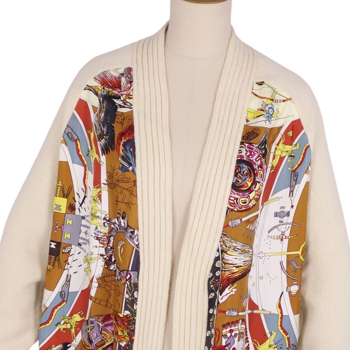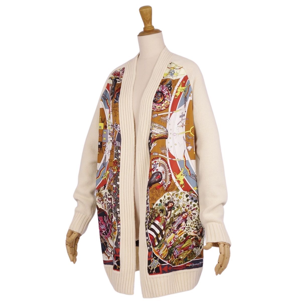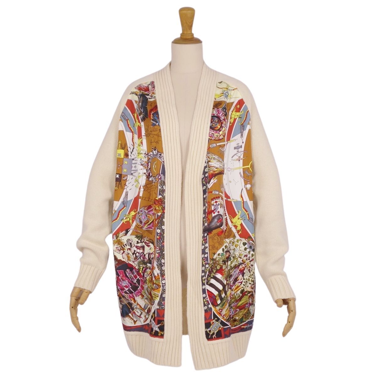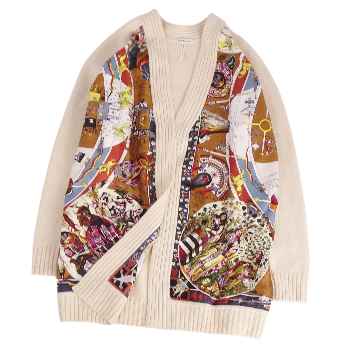 | 美品 エルメス HERMES カーディガン マルジェラ期 ニット キャメル シルク切り替え トップス レディース M マルチカラー |