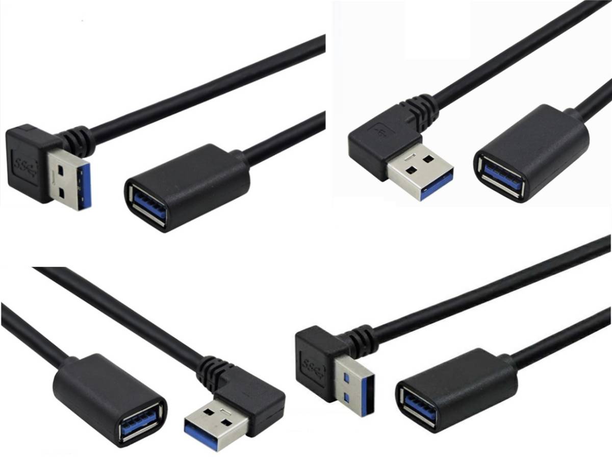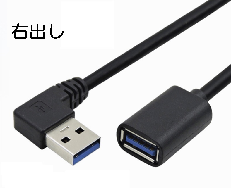 | 4個セット USB3.0 L字L型 延長ケーブル 30センチ タイプAオスータイプAメス(横出し サイド 90度 直角 角度 アングル 30cm) | |