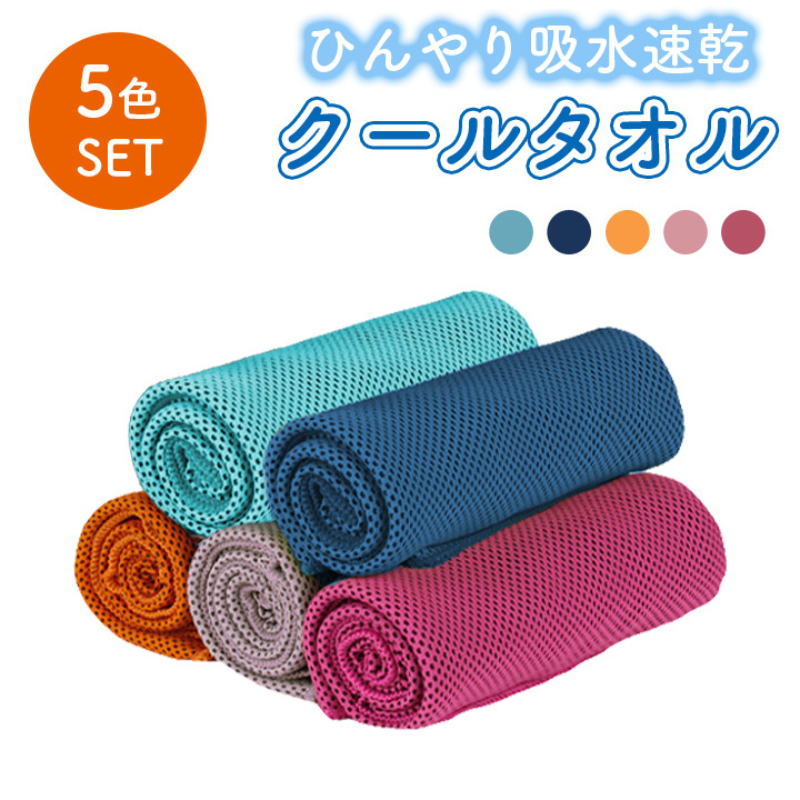 5枚セット 冷感タオル クールタオル スポーツタオル フェイスタオル ひんやり 吸水速乾 涼感 通気性 熱中症対策 UVカット 暑さ対策