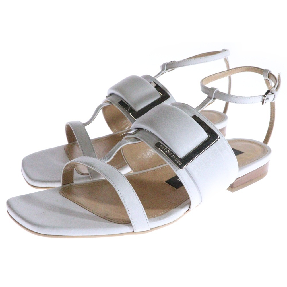 品名SR PRINCE アンクル ストラップ シルバー バックル フラット サンダル レディース ホワイト A98020