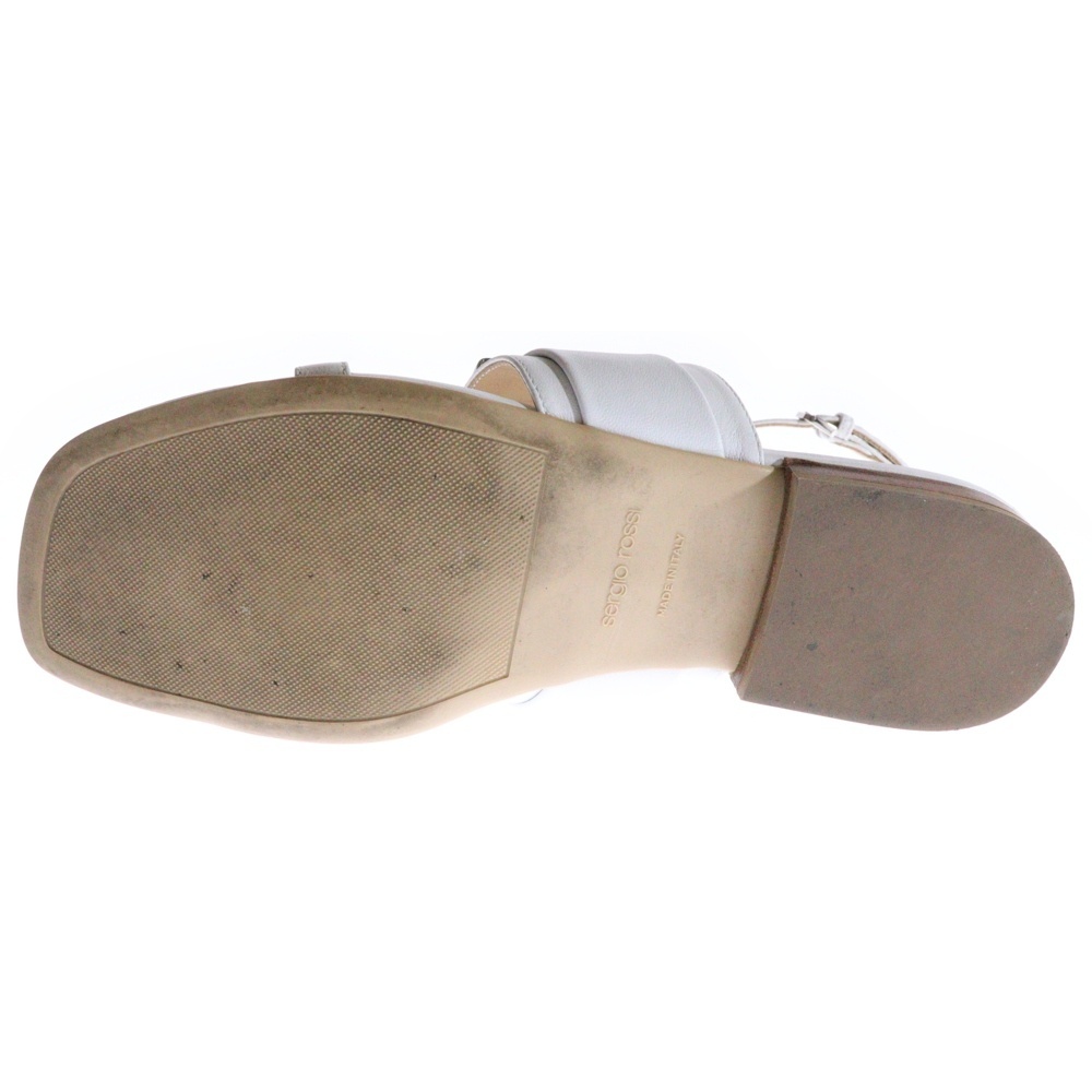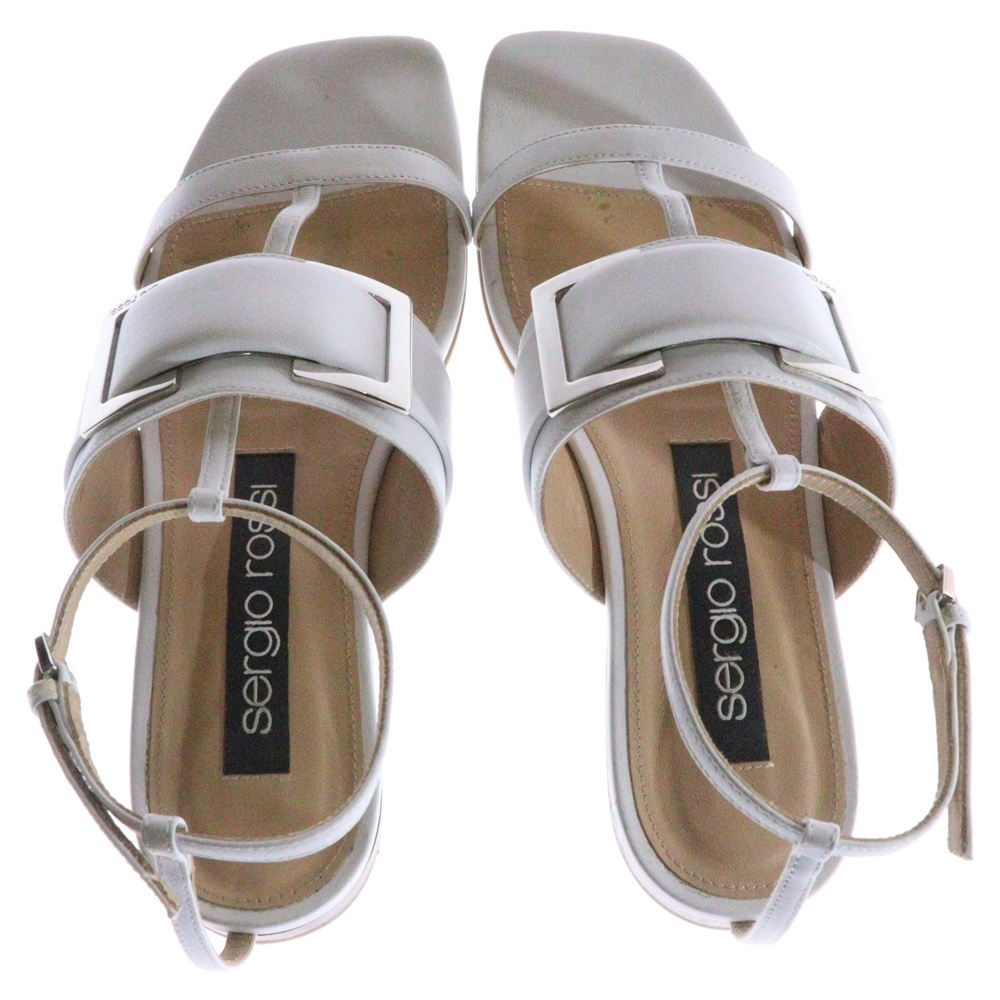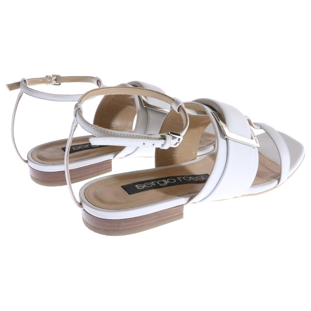 Sergio Rossi セルジオロッシ SR PRINCE アンクル ストラップ シルバー バックル フラット サンダル レディース ホワイト A98020
