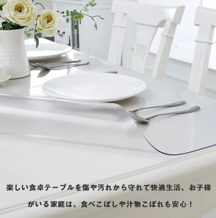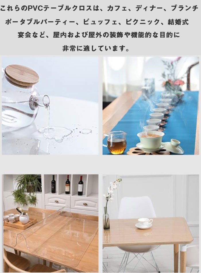 商品材質:透明テーブルマットは良質PVC製、環境にやさしく、無臭,耐熱性,飲み物、お酒、油等をこぼしても、気楽に拭けます!