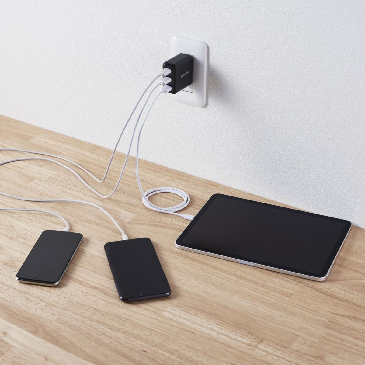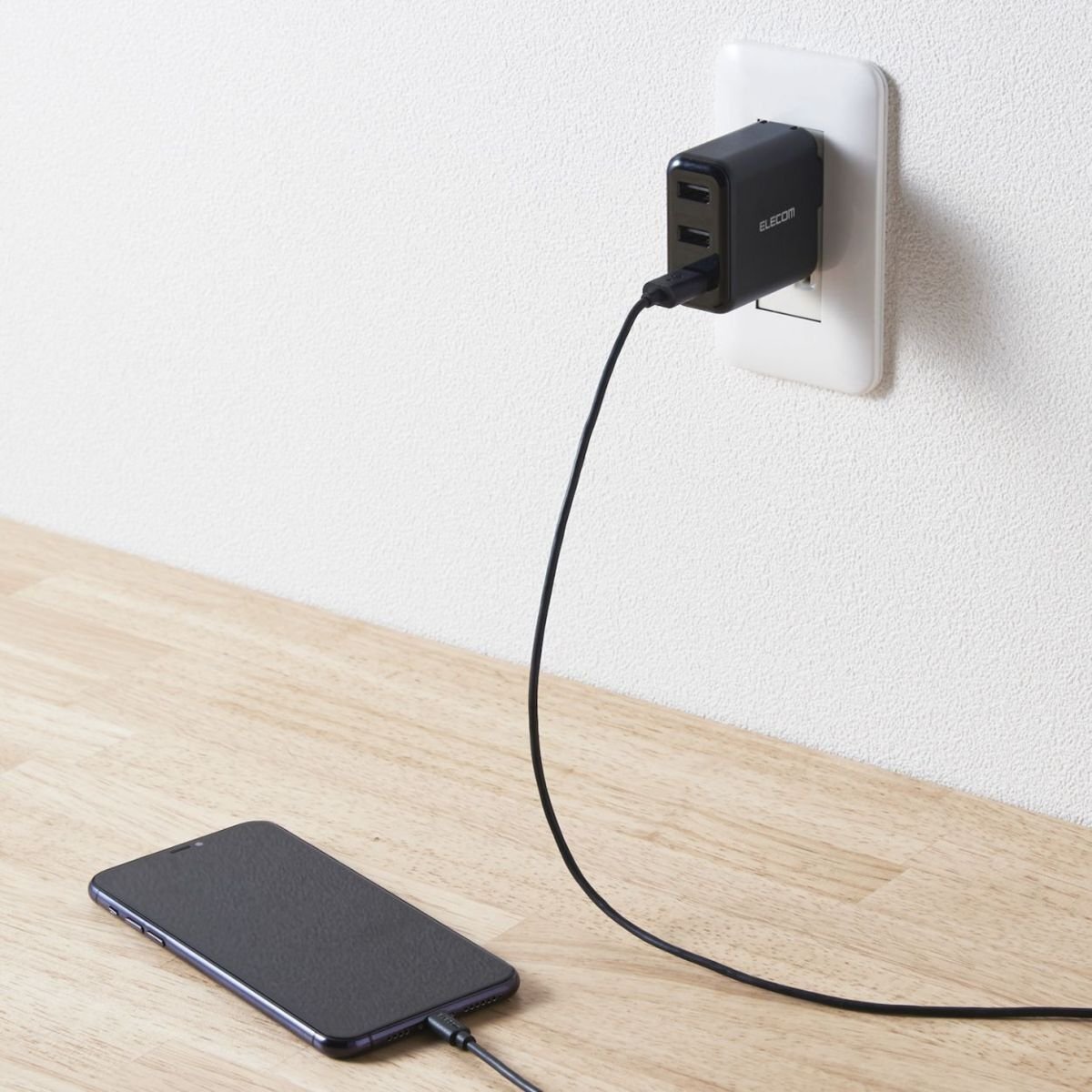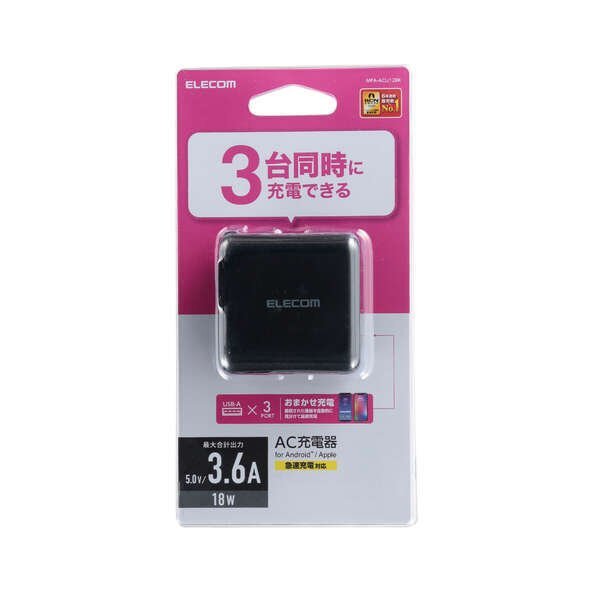 | 送料無料 MPA-ACU12シリーズ MPA-ACU12B 家庭用コンセントからスマートフォンやタブレット等を充電、給電できるAC充電器です。 出力端子が3ポートありますので、スマートフォンなどを3台同時に充電が可能です。