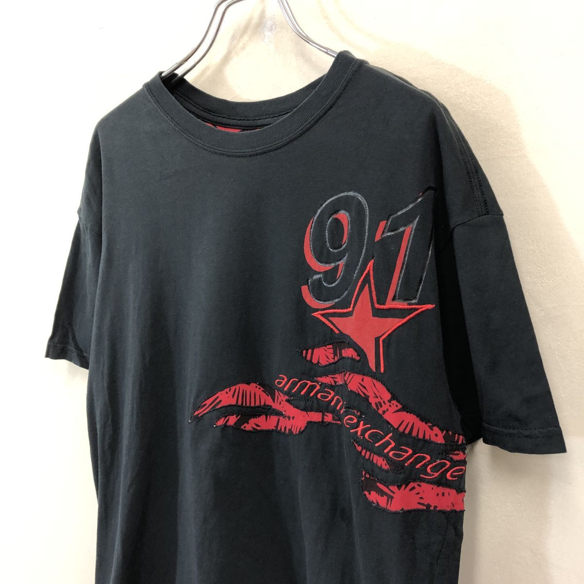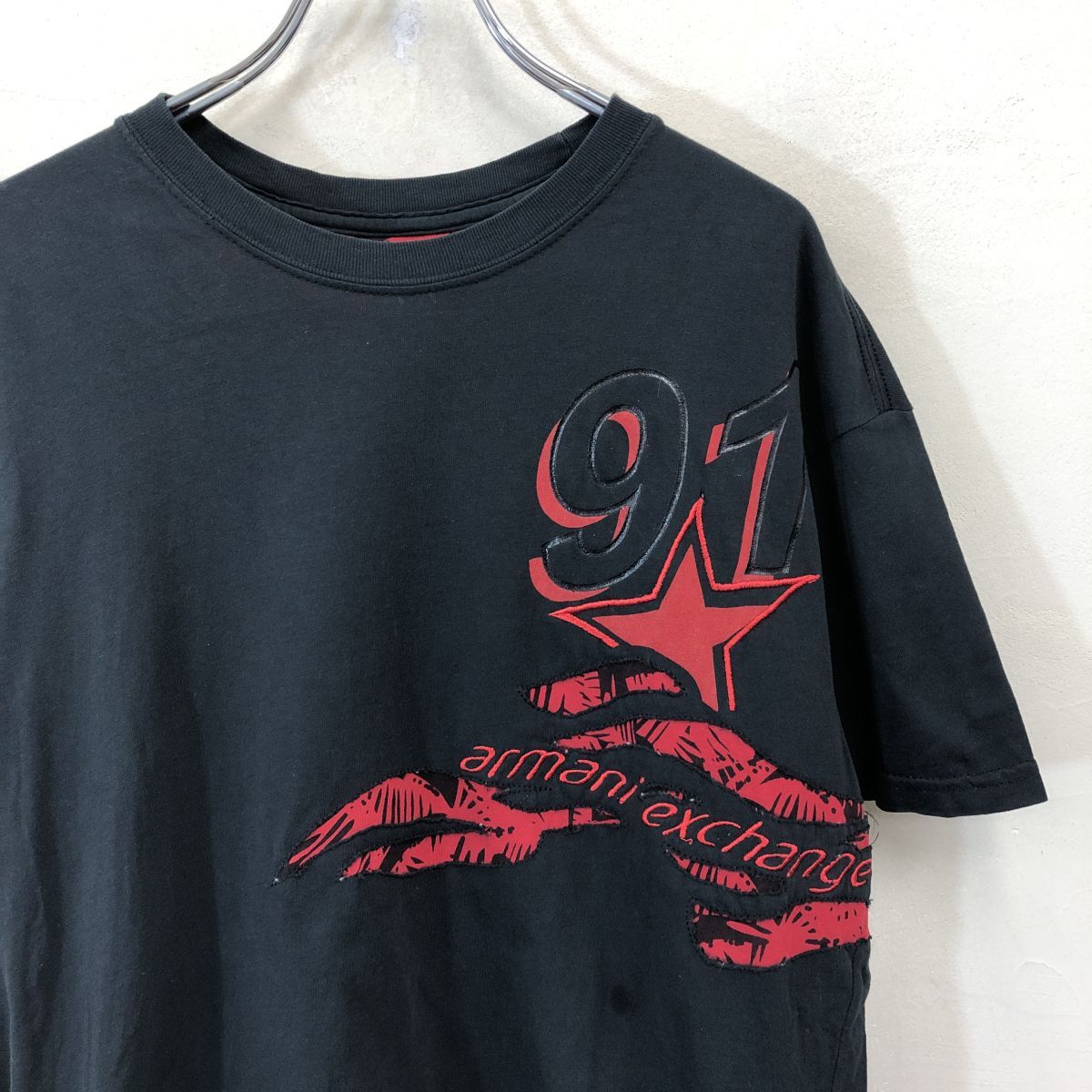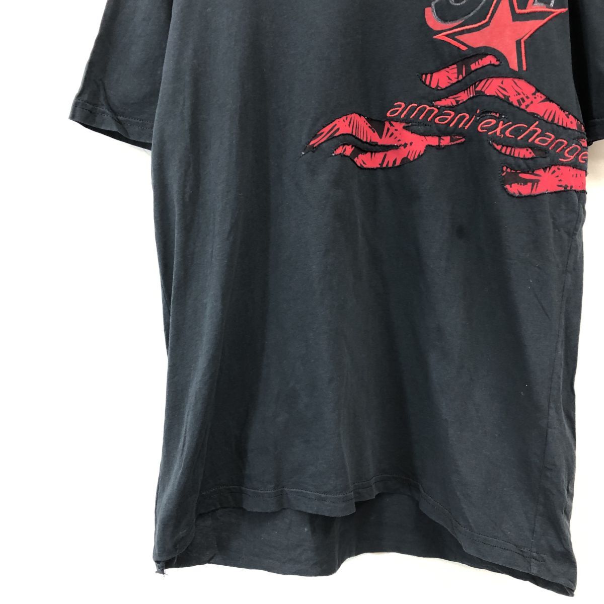 2H2488-Y◆ARMANI EXCHANGE アルマーニエクスチェンジ 半袖Tシャツ デザインロゴ 刺繍 クルーネック カットソー ◆sizeS ブラック 綿