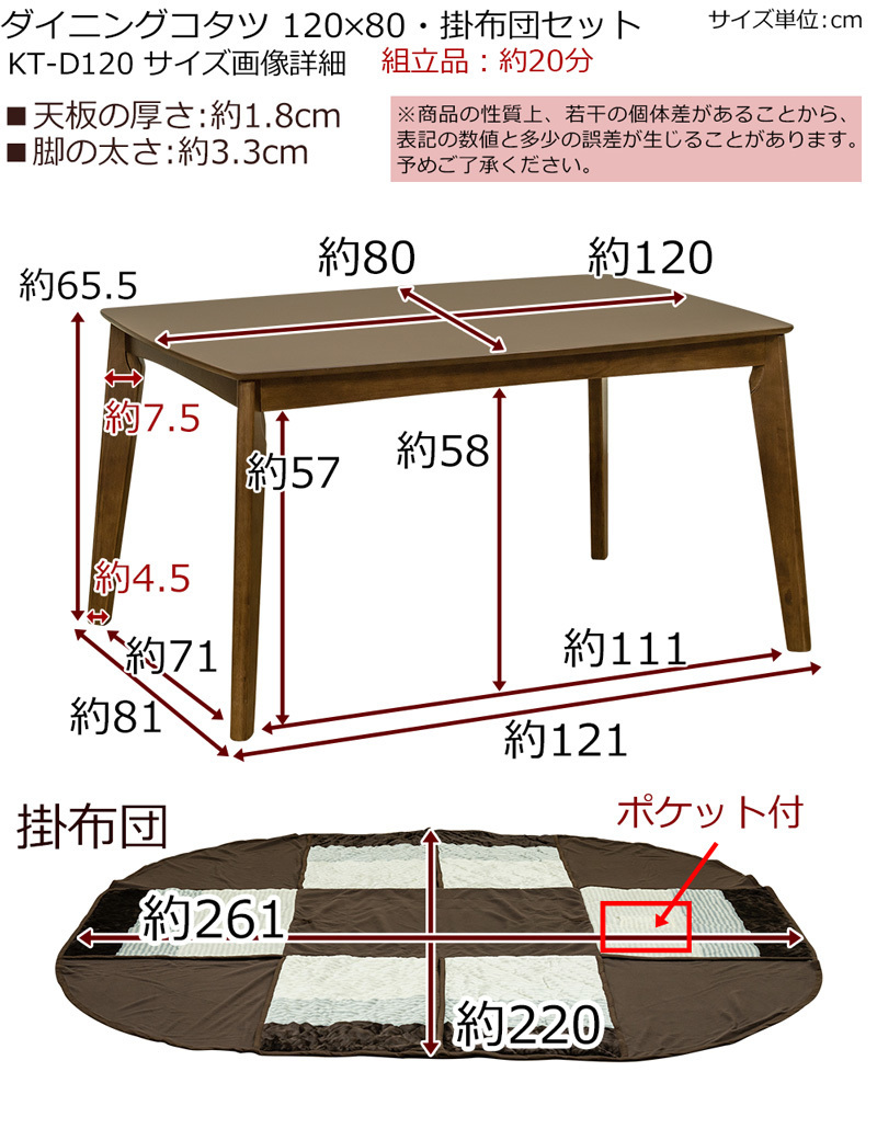 ダイニングコタツ 120×80 長方形 掛け布団セット コタツの色、ブラウン(BR) | |