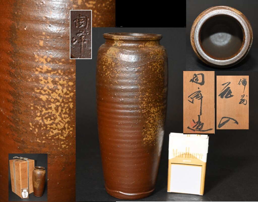 備前焼■木村陶峰 作■ 備前花入 共箱・栞付 高約24cm 陶正園 窯変 花瓶 花器 花生 飾壷 茶道具 真贋保証 | |||