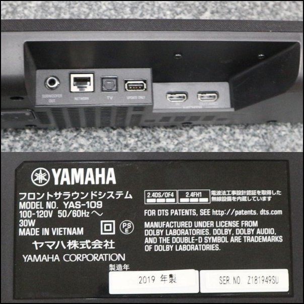 中古動作品 YAMAHA/ヤマハ フロントサラウンドシステム YAS-109 2019年製 リモコン付 送料2000円