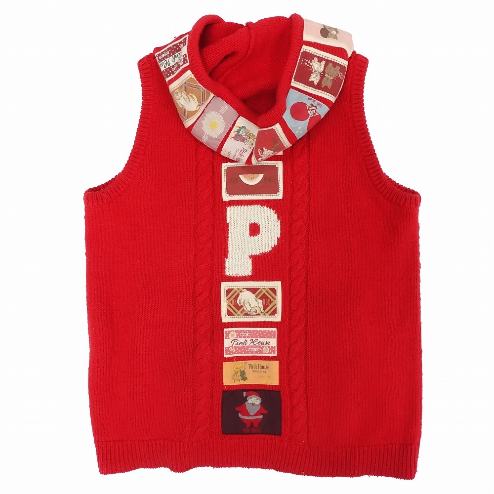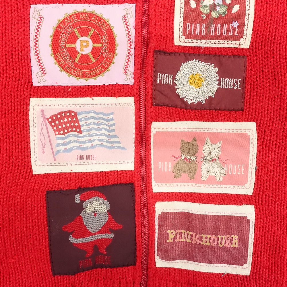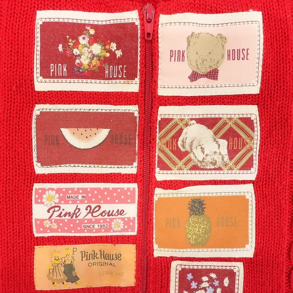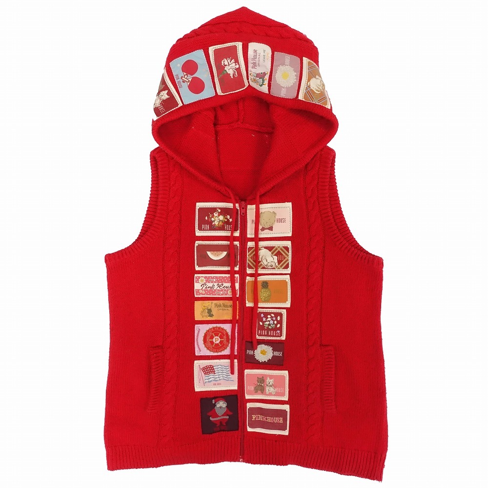 | 【PINK HOUSE ピンクハウス ワッペン パッチワーク ベスト ニット パーカー ノースリーブ ジャケット レッド レディース】 | |