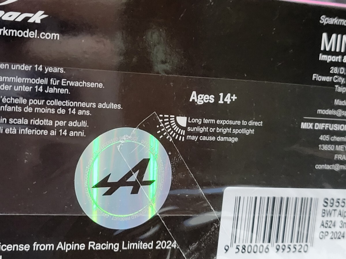 新品 1/43 スパーク SPARK ボード2種付 BWT Alpine F1 A524 No.10 3nd Brazilian GP 2024 Pierre Gasly 150th GP Race ガスリー アルピーヌ