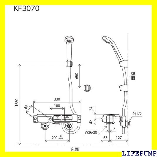 KVK 浴室用ラクダスサーモスタット式混合水栓 KF3070 744