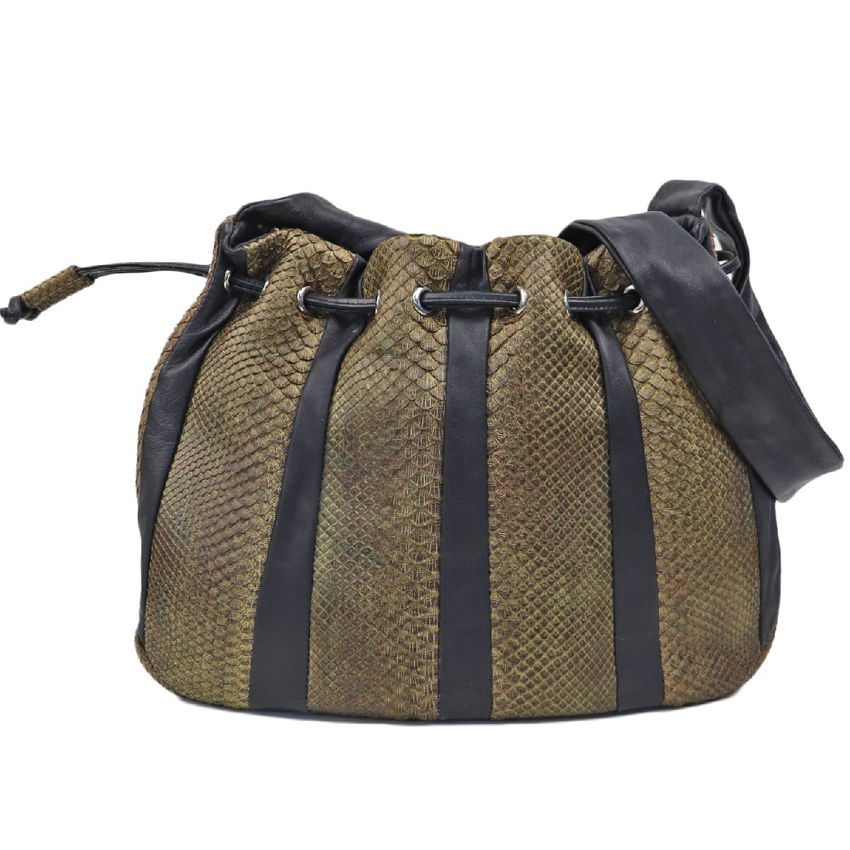 ■□ショルダーバッグ パイソン×レザー ブラウン×ブラック ノンブランド 中古品□■ | ||