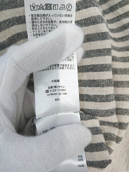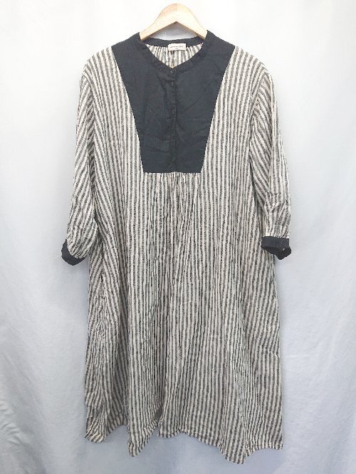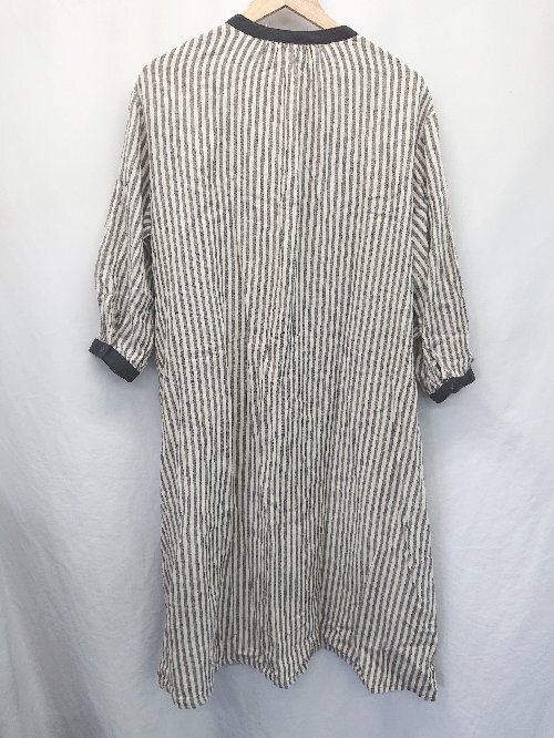 ◇ ⊂ SM2 サマンサ モスモス リネン混 ストライプ 長袖 膝下丈 ワンピース サイズF ベージュ グレー系 レディース E