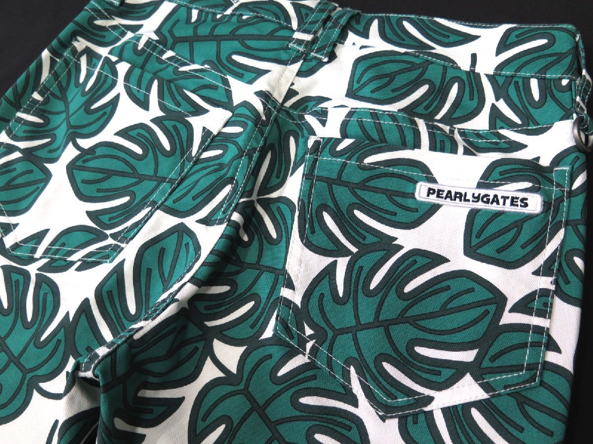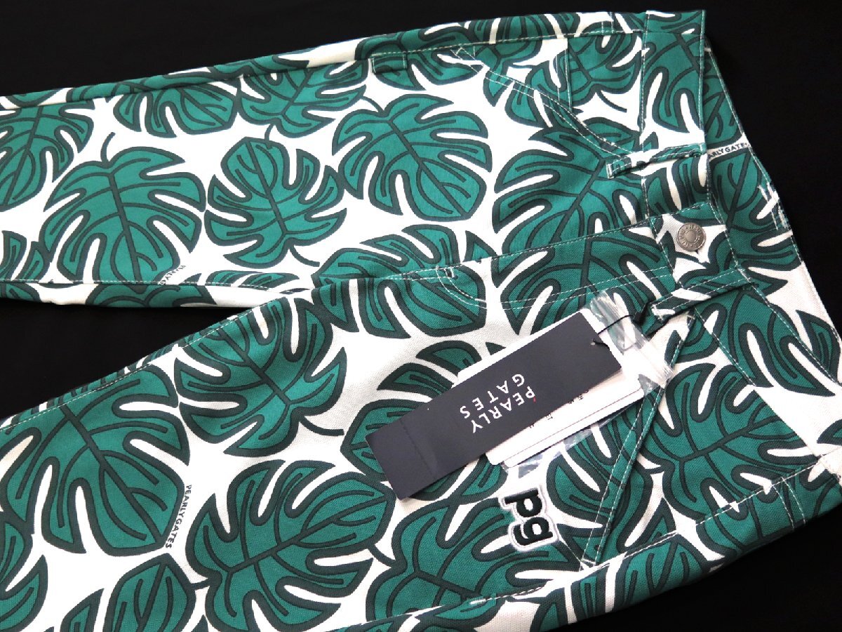 商品名● PEARLY GATES パーリーゲイツ ●新品 【接触冷感 紫外線防止】 モンステラ柄 ストレッチ ロングパンツ グリーン/S 定価29700円