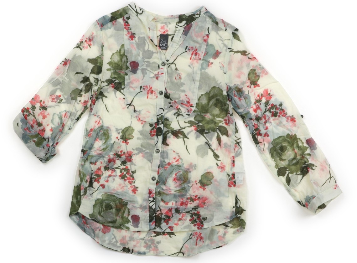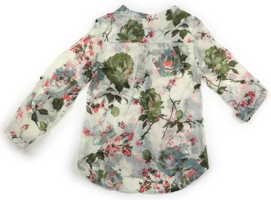 中央部分に青いペン跡があります。綿100%のガーゼの様な優しい肌触りです。透け感があります。まだまだ普段着として活躍してくれそうです。実際のサイズ表記は128cmです。