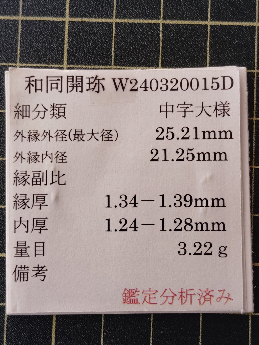 皇朝銭 和同開珎 中字大樣 K-Coin`s様鑑定済