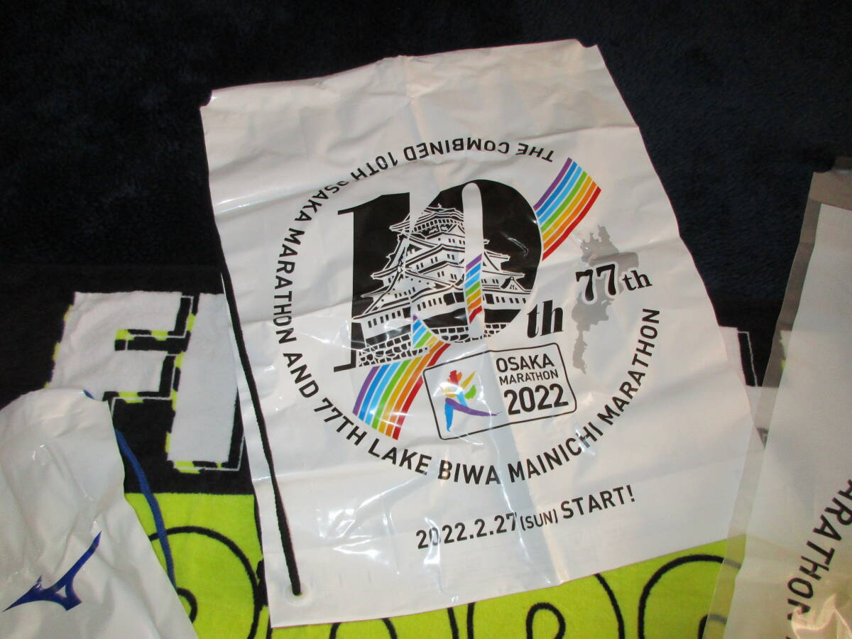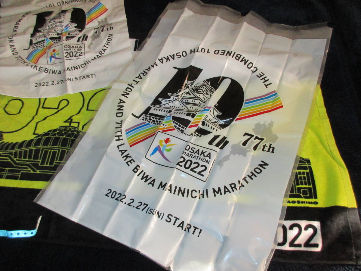 77回 大阪マラソン 2022 and 77回 びわこ毎日マラソン 2/27 大会出場者記念品 フィニッシャータオル バスタオル 非売品 未使用 ランニング 駅伝 マラソン