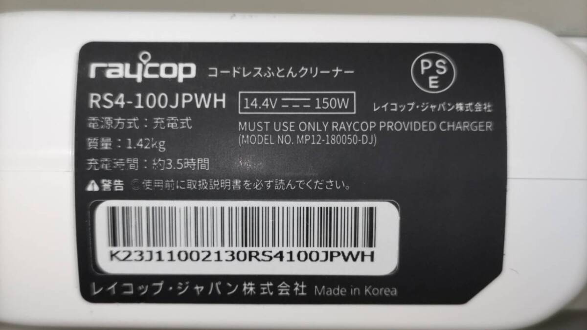 (美品) raycop レイコップ コードレス ふとんクリーナー RS4-100JPWH UV除菌 ペットプラス 軽量 通電動作確認済 中古 現状品 画像の通り