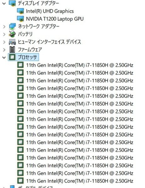 CPU | Intel Core i7 11850H(8コア16スレッド) | |
