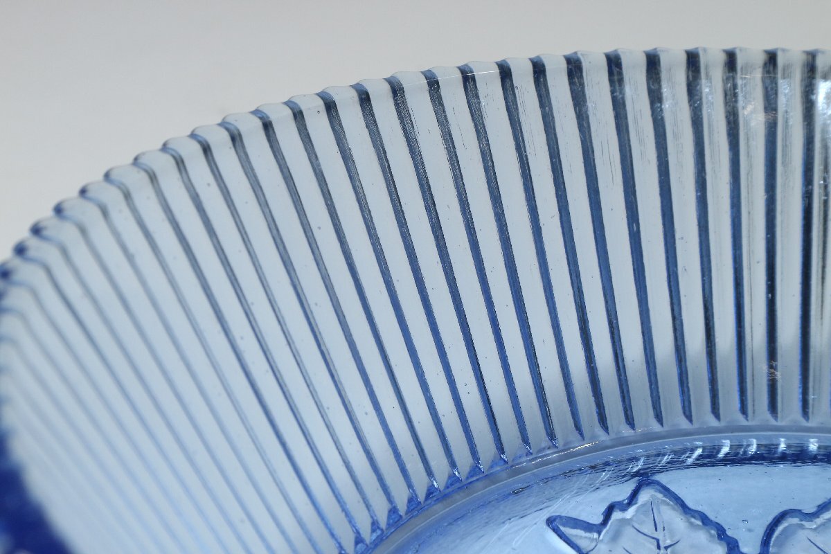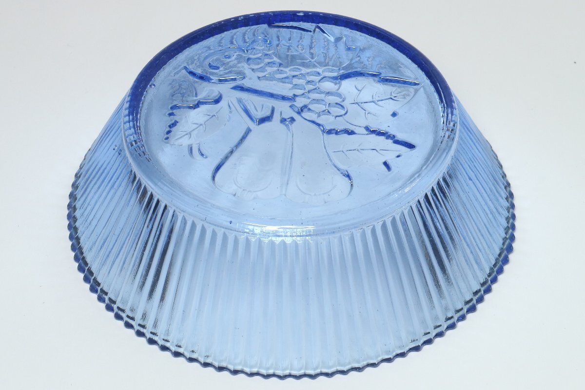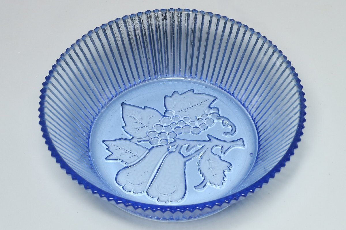 | ・昭和レトロ ウランガラス 葡萄紋 硝子鉢 /硝子細工 ガラス工芸 菓子器 皿 プレス硝子 | ||||||||||
