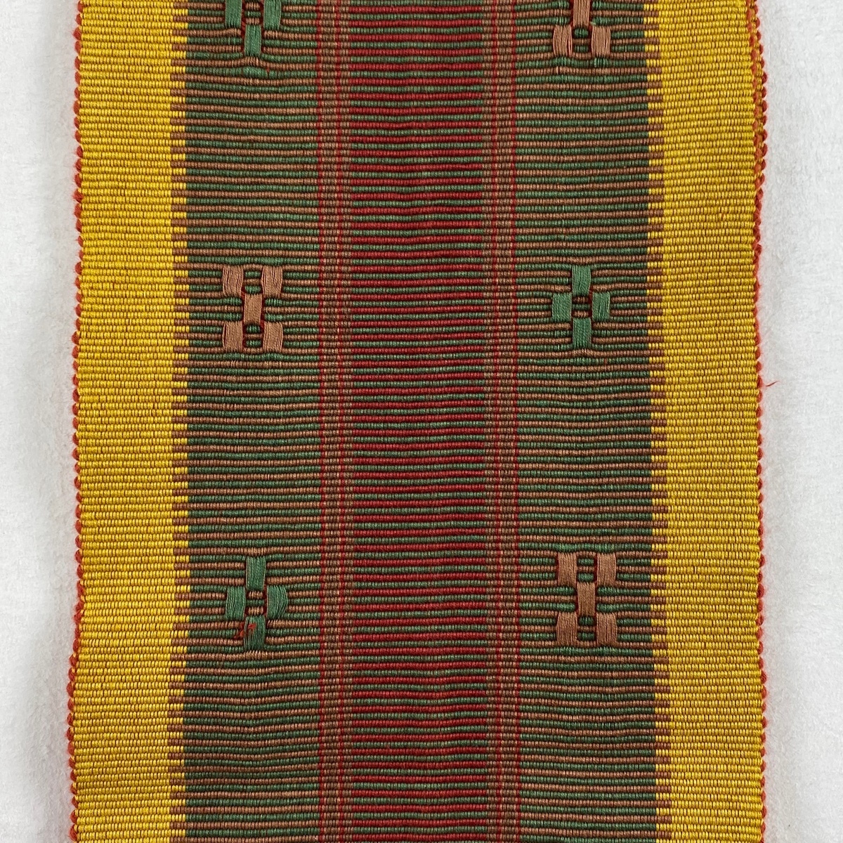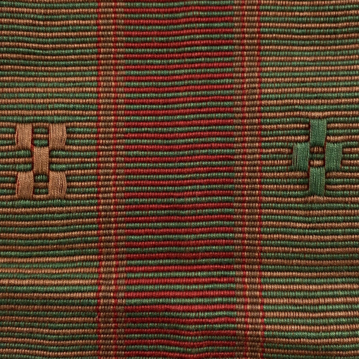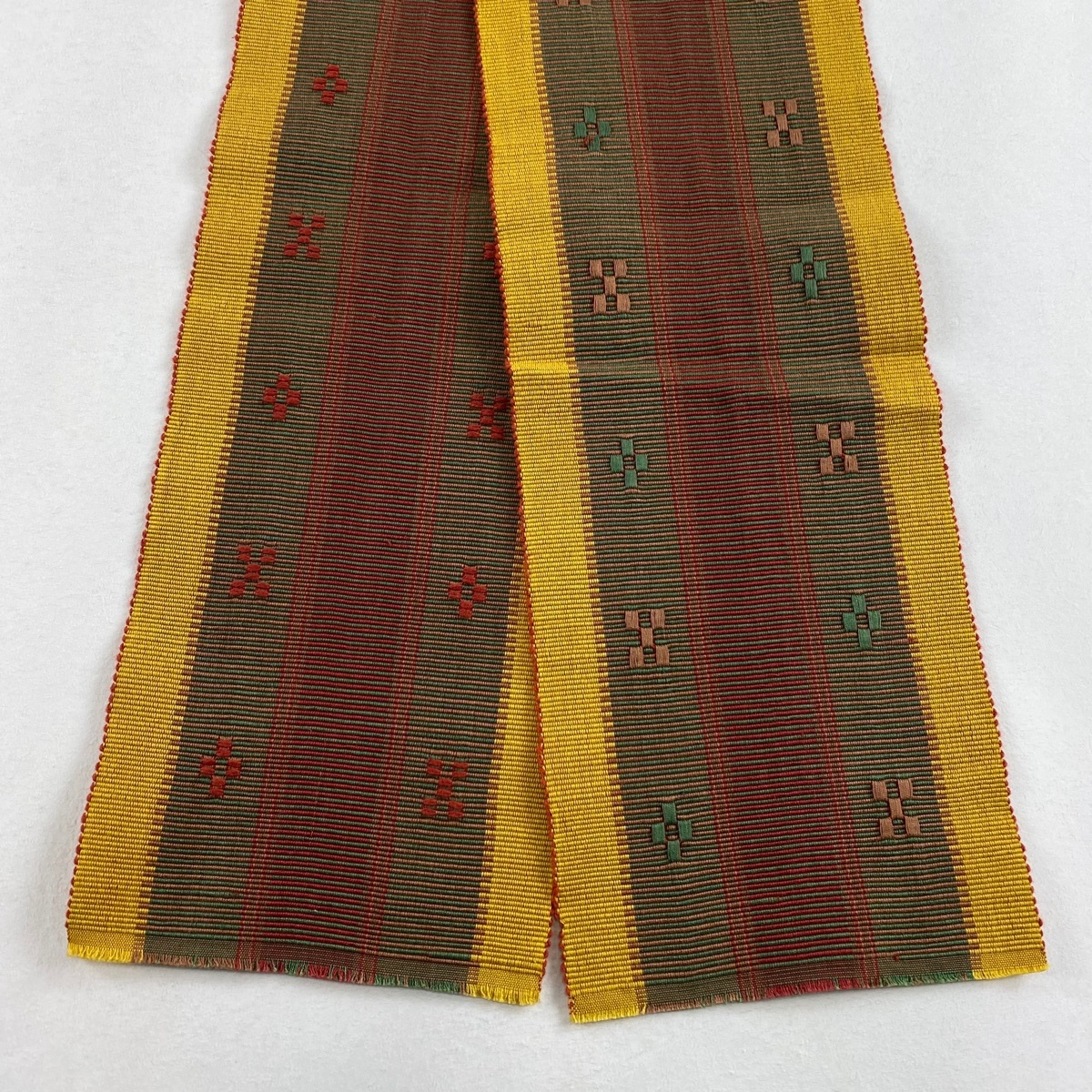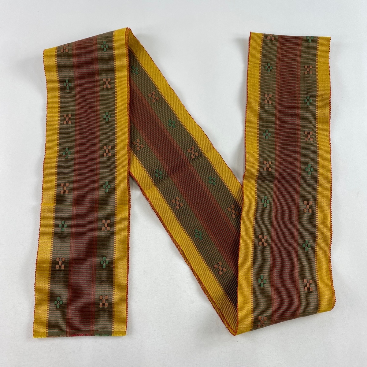 | 半幅帯 秀品 縞 幾何学 黄土色 綿 【中古】 |
