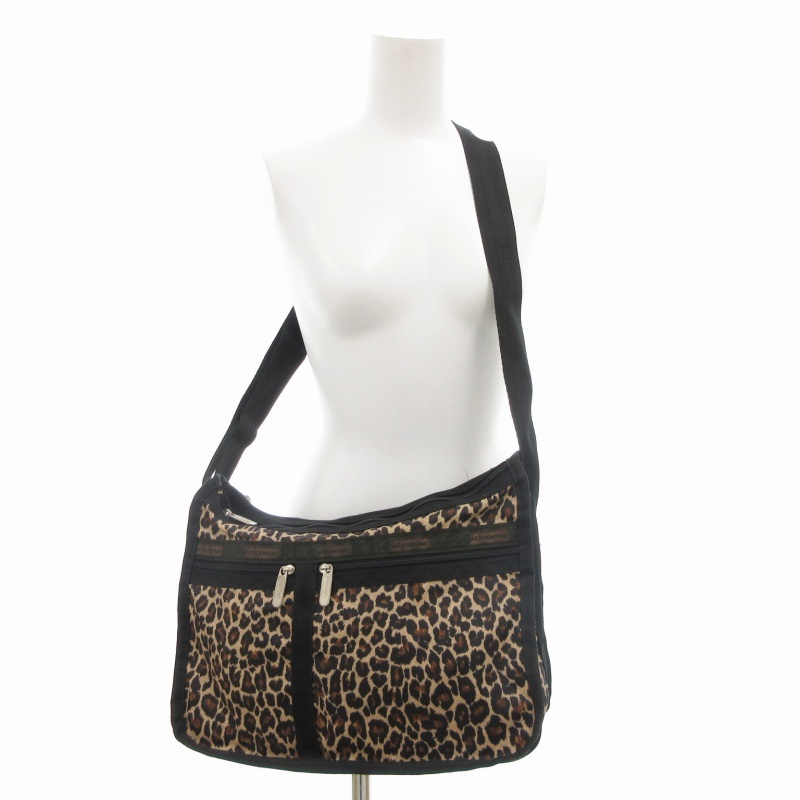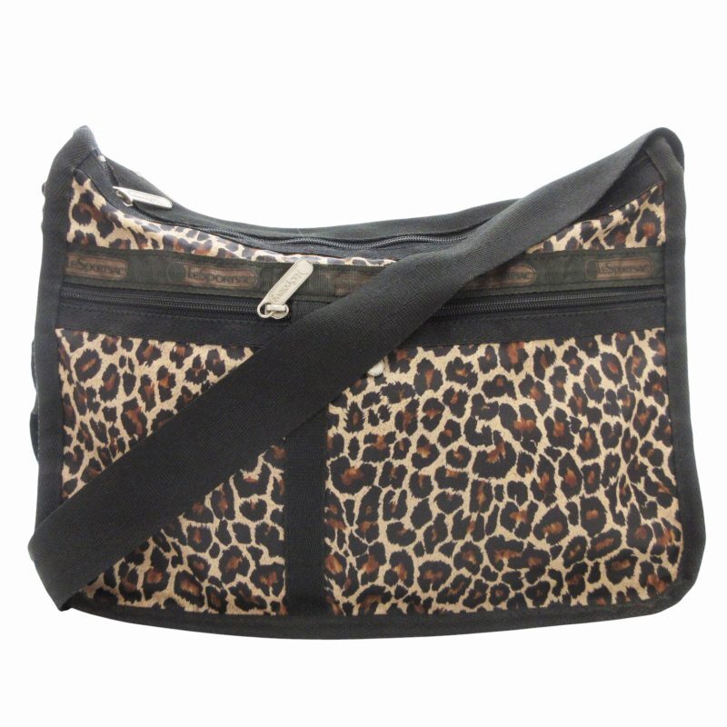 レスポートサック LesportSAC ショルダーバッグ 斜め掛け クロスボディ ポーチ付 レオパード柄 ナイロン 茶 ブラウン /GV ■GY99