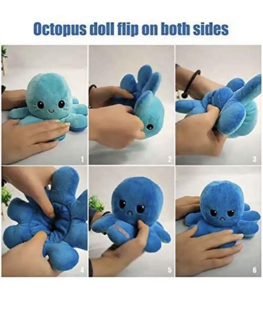 ぬいぐるみ タコ リバーシブルタコのぬいぐるみ 裏返したタコ人形 両面フリップ人形 可愛い プレゼント ギフト ふわふわぬいぐるみ お祝い お誕生日 怒る顔も笑い顔も 面白い (スカイブルー*ブルー