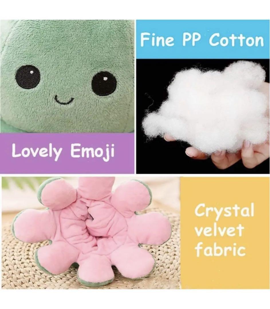 リバーシブルデザイン】このかわいいタコのぬいぐるみは、ユニークな両面2色デザインを採用しており、さまざまな色や表情に簡単にめくることができます。ユニークなデザインとリアルなスタイリングは、視覚と感覚の異なる体験を提供します。