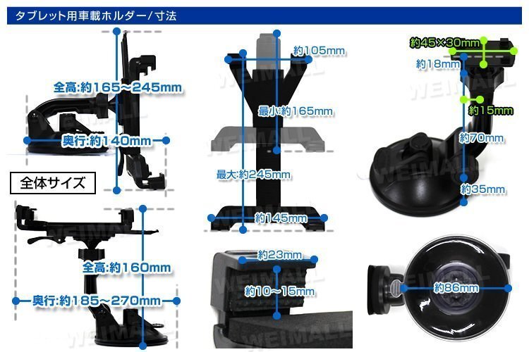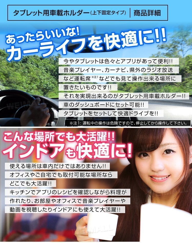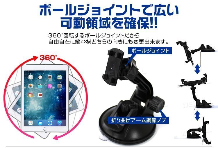 タブレット用 車載ホルダー 吸盤タイプ 上下固定 角度調節 360度回転可能 |