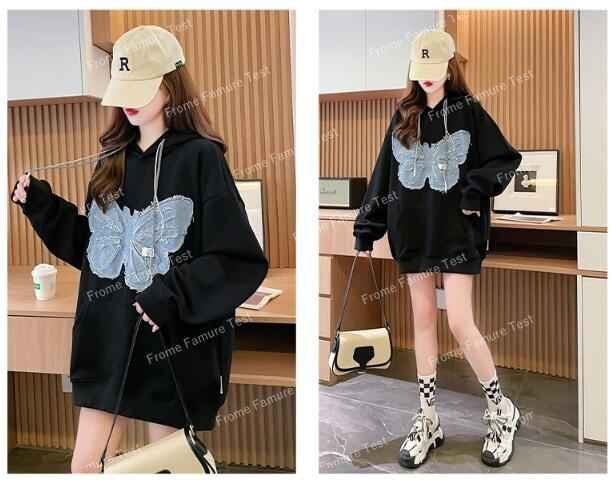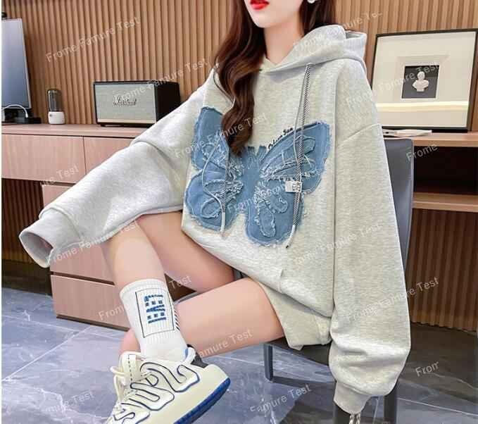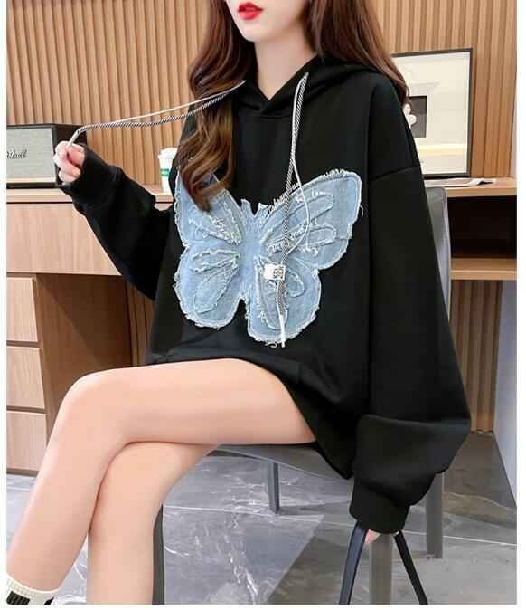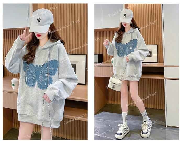 長袖パーカー カジュアル かわいい 蝶 レディース 裏起毛付き L グレー
