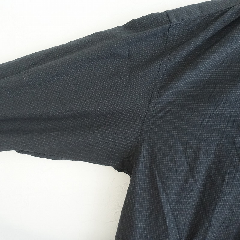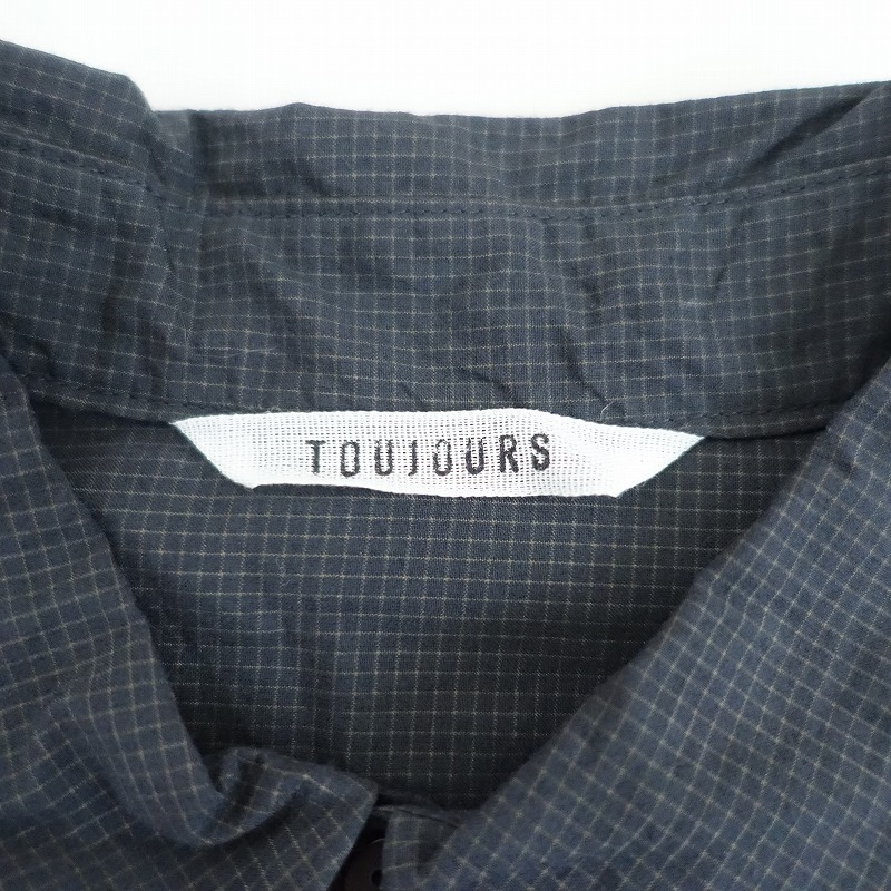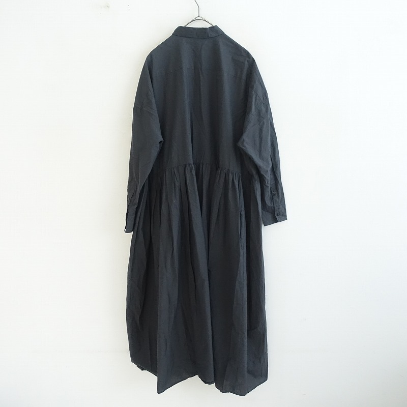 TOUJOURSのコットンシルクチェックロングシャツワンピースです。カラーはチャコールグレーで、格子チェック柄の施されたコットンシルク地で仕立てられています。トップボタン下は比翼仕立てで、ウエスト切り替えにギャザーがあしらわれています。 |