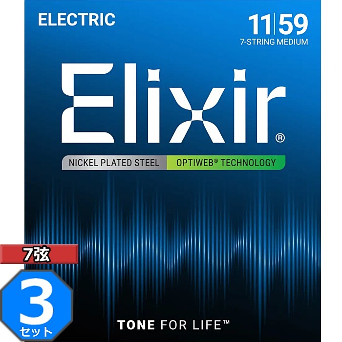 3セット 7弦用 Elixir OPTIWEB #19106 7-String Medium 011-059 エリクサー コーティング弦 エレキギター弦