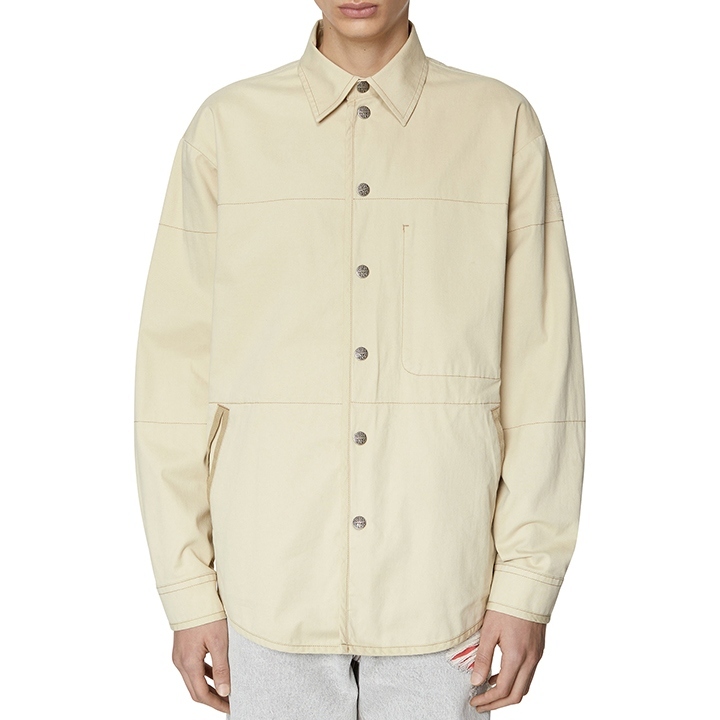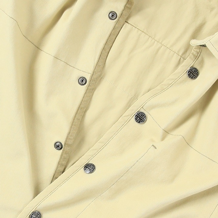 | 【平置き実寸サイズ】※単位cm 【XL】(XXL相当)肩幅57 身幅64 袖丈64 着丈82 【素材】コットン(綿)98% ポリウレタン2% 裏地:コットン(綿)100% 【生産国】TURKEY 【フロント】スナップボタン | ![]() |