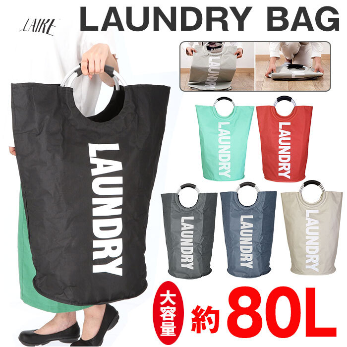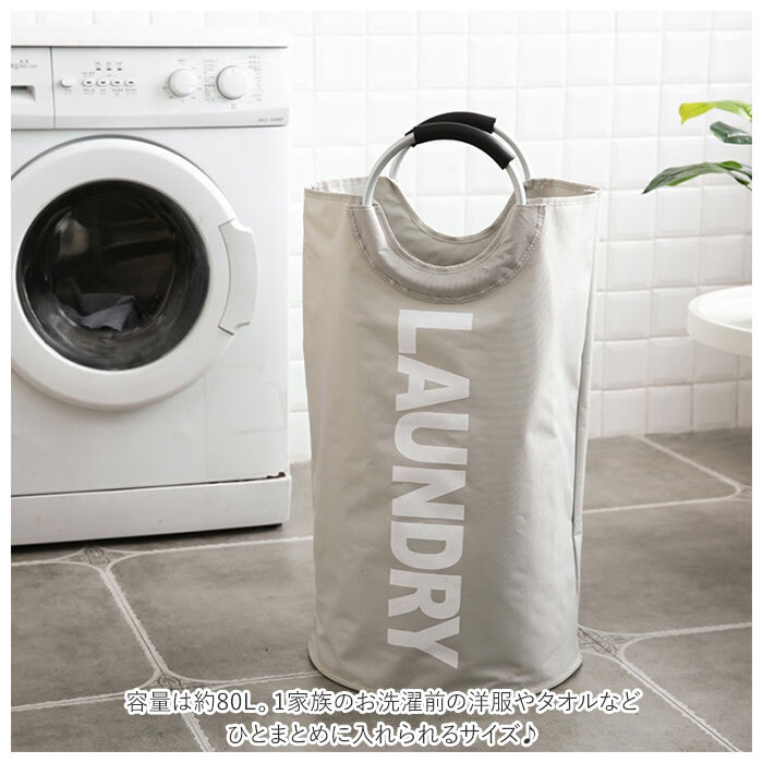 | 商品説明 | ・・大容量のランドリーバスケットが登場! ・容量は約80L。1家族のお洗濯前の洋服やタオルなどひとまとめに入れられるサイズ♪ ・濡れて重くなった洗濯物の持ち運びで手が痛くならないよう、持ち手ハンドルにはEVA樹脂のソフトカバー付き。 ・使わない時にはコンパクトに折りたたんで、洗濯機横などのちょっとした隙間に収納可能。 ・洋服の他にもお子様のおもちゃや日用品の収納にも便利。 |