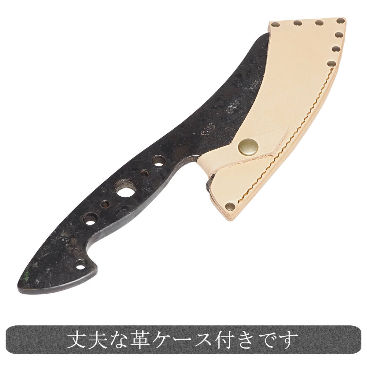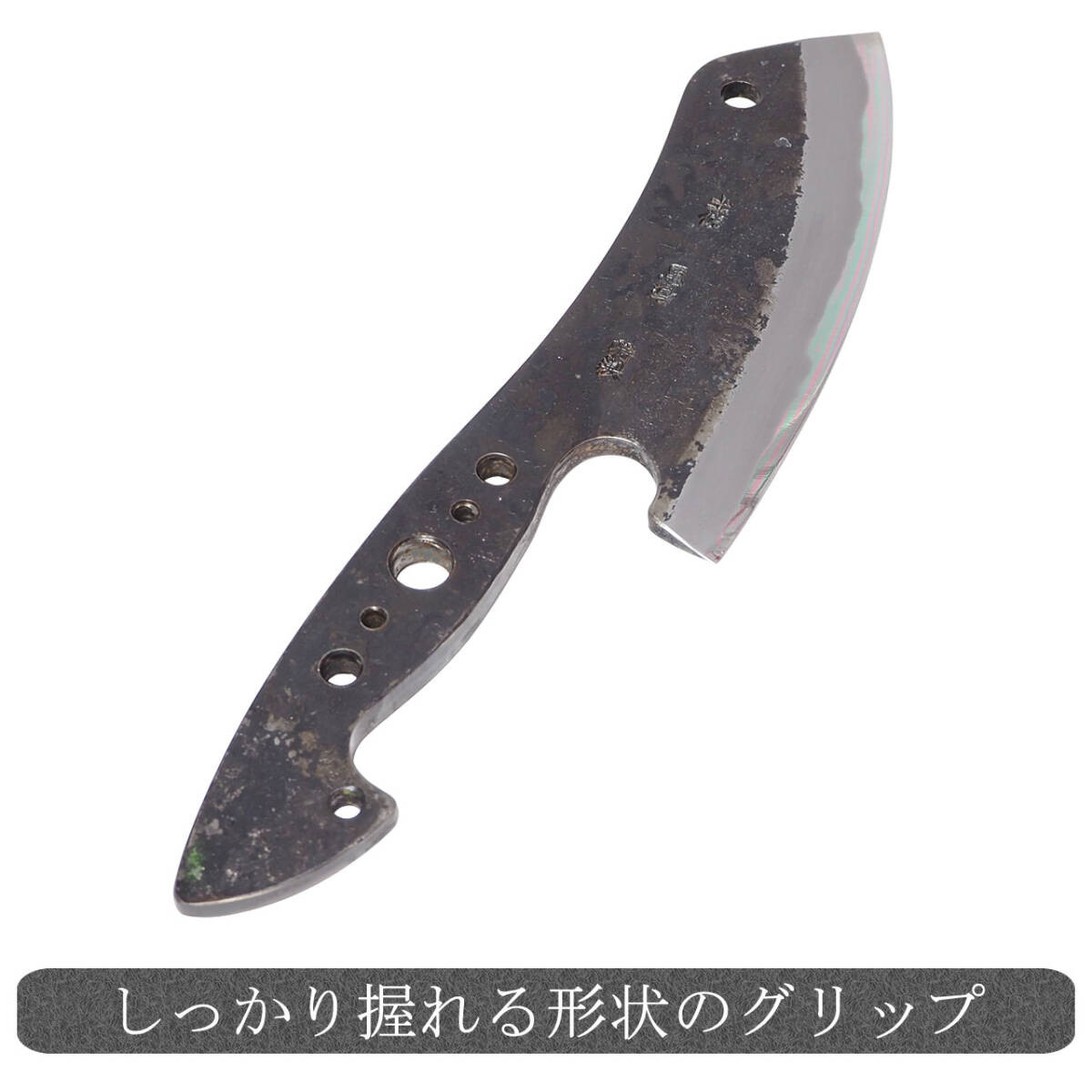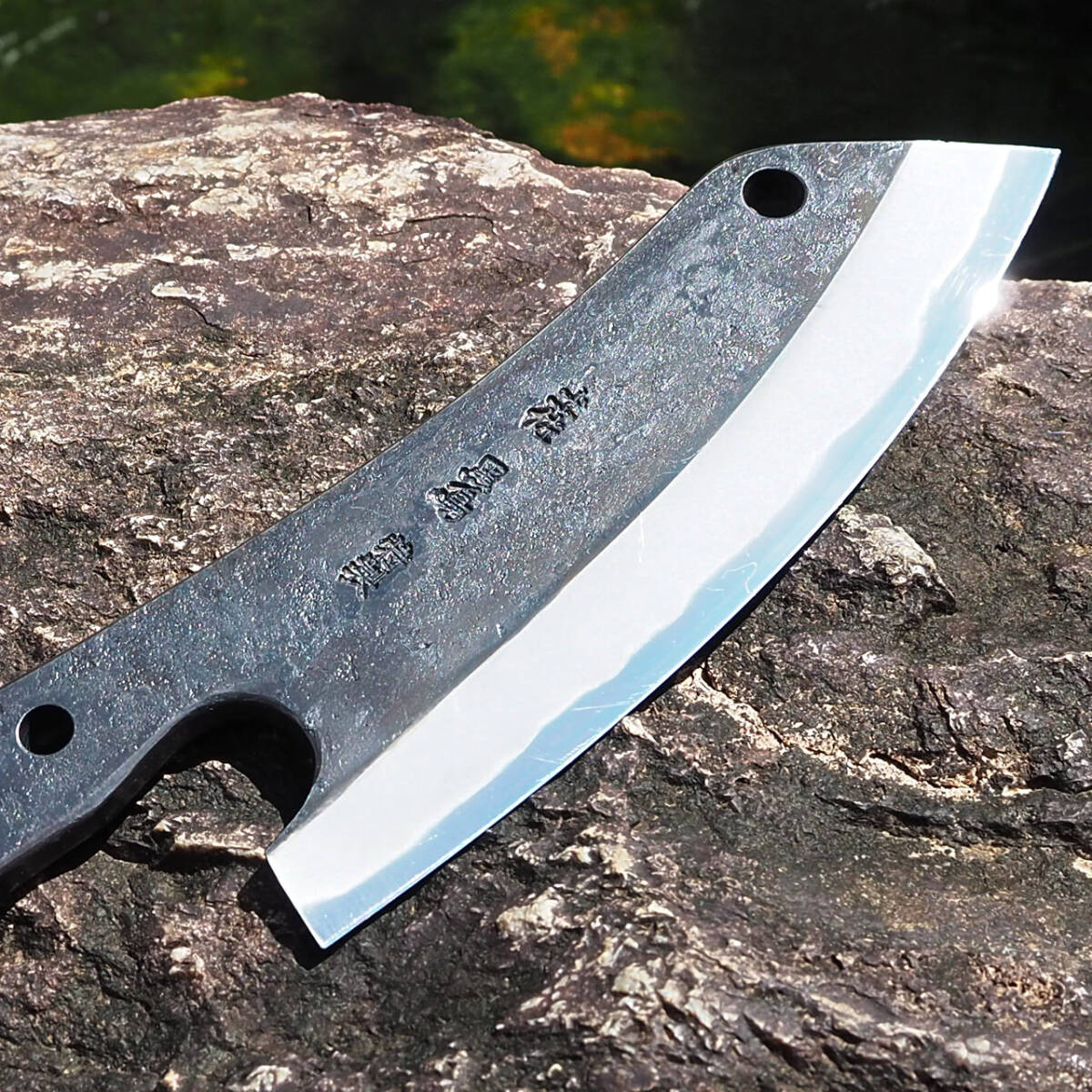 表面の仕上げは、土佐打ち刃物の特徴の一つでもある、黒い部分を残した「黒打(くろうち)」仕上げ。