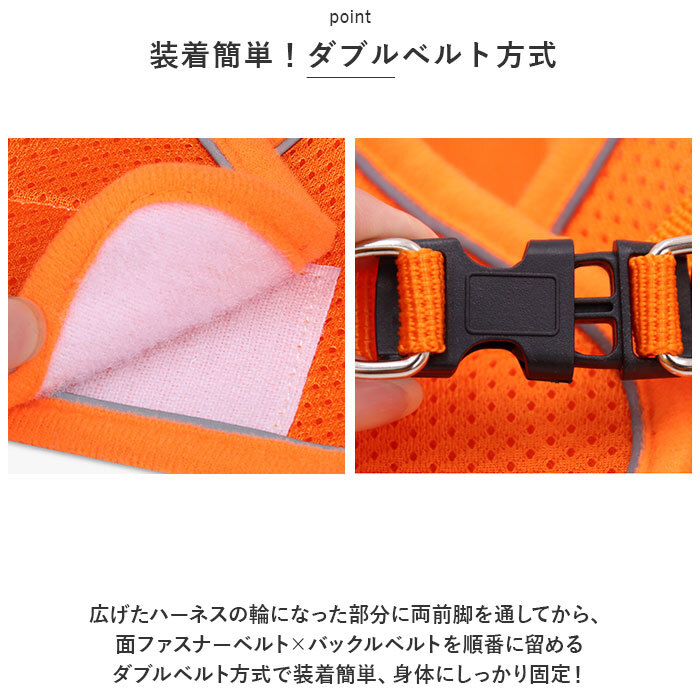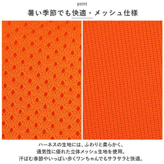 | 商品説明 | ・・真夏のお出掛けもサラッと快適!ワンちゃんもネコちゃんも使える「ペット用ハーネス&リードセット」が新登場。 ・【暑い季節でも快適・メッシュ仕様】 ・ハーネスの生地には、ふわりと柔らかく、通気性に優れた立体メッシュ生地を使用。汗ばむ季節やいっぱい歩くワンちゃんでもサラサラと快適。 ・【装着簡単!ダブルベルト方式】 ・広げたハーネスの輪になった部分に両前脚を通してから、面ファスナーベルト×バックルベルトを順番に留めるダブルベルト方式で装着簡単、身体にしっかり固定! ・【ハーネスとお揃いのリード付き】 ・ハーネスと同系色の丈夫なナイロンロープで仕上げたリードが付属。ナスカン金具でバックルベルトのDカンにワンタッチ接続が可能。 ・【ねじれを防いでお散歩スムーズ】 ・ナスカン金具とリードのジョイント部分が360度回転するので、お散歩中のリードのねじれも気にならない♪ ・【キラリと光って安心】 ・ハーネス両サイドにはリフレクター素材のラインをデザインし、自動車のライトをキラリ反射して、夜のお散歩でも安心。 ・【ペットの身体に優しいつくり】 ・リードで引っ張られる力を、胸や肩など身体全体で受け止めるハーネスタイプだから、ペットの身体への負担を軽減。首の骨が細く、呼吸器に負担がかかりやすいチワワやトイプードルなどの小型犬にも最適。 ・【ぴったりサイズをチョイス!】 ・ペットの身体のサイズに合わせて選べるS・M・Lの3サイズ展開。小さめサイズはネコちゃん用にも♪(※推奨体重・・・Sサイズ:3.6kg程度まで・Mサイズ:5.6kg程度まで・Lサイズ:8.4kg程度まで。) ・【お散歩や病院へのお出掛けに】 ・毎日のお散歩が待ち遠しくなる、ふんわり快適なハーネス&リードセット。歩くのが大好きなワンちゃんはもちろん、動物病院に通院中のネコちゃんにオススメ。 |