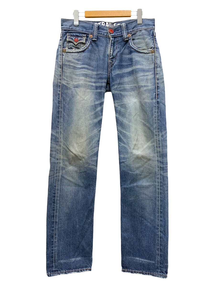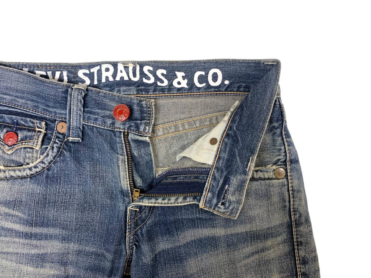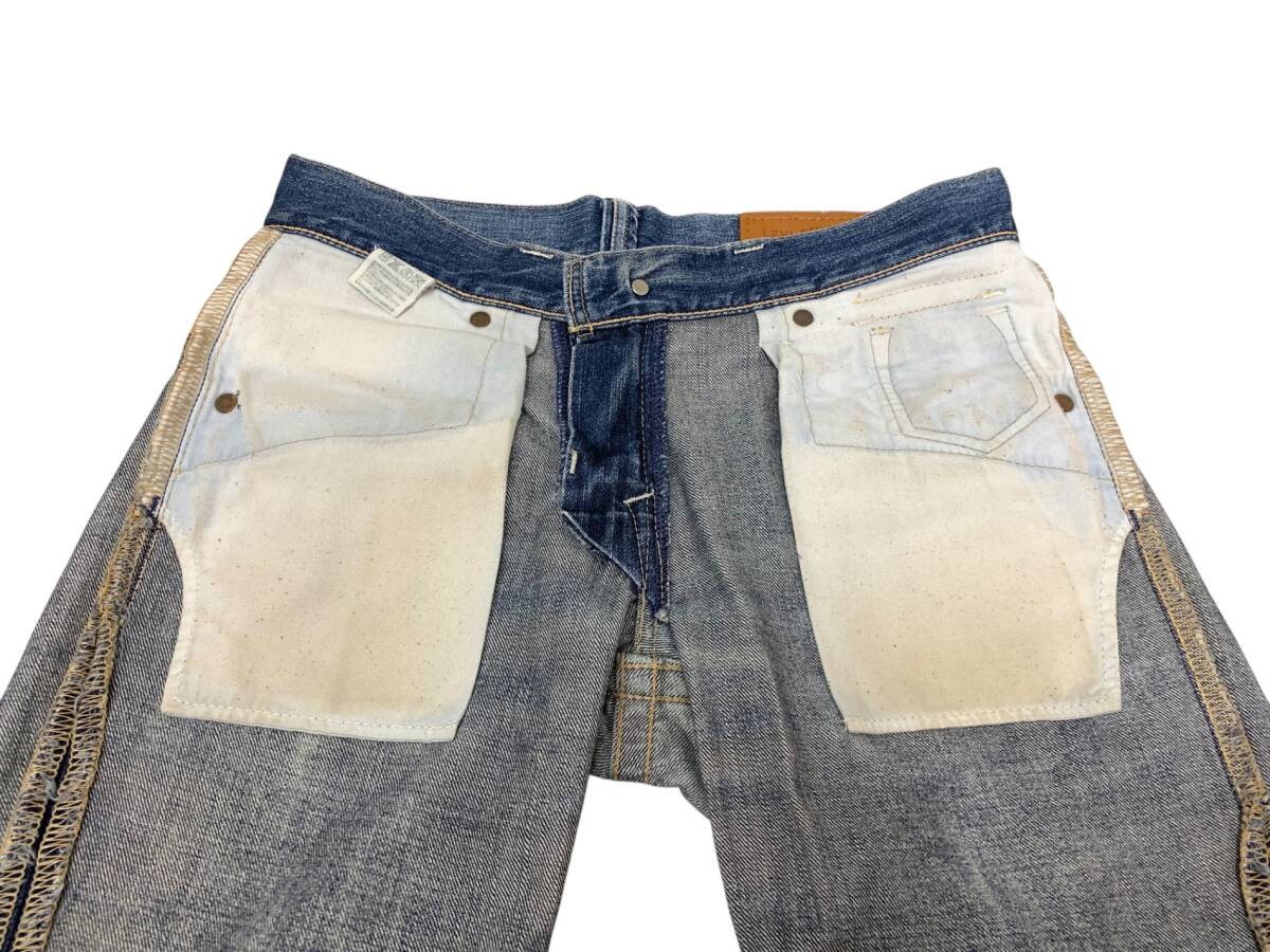 実寸サイズ | ウエスト:約80cm(平置きウエスト×2) 股上:約24cm(内股の合わせ~ウエスト上端) 股下:約77.5cm(内股から裾) もも幅:約25cm 裾幅:約19.5cm |