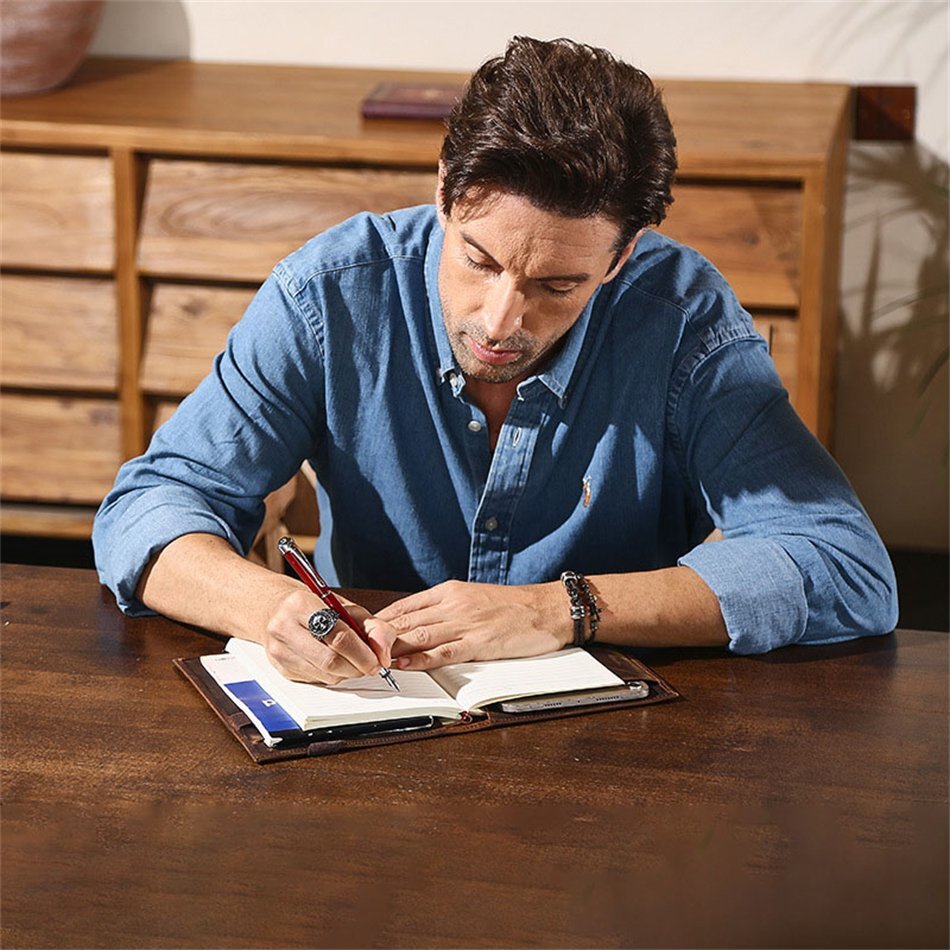 100%上質牛本革を使用し、厚くて柔軟な生地、素敵な質感あリ、皺になりにくく良い手触りがします。 シンプルこそのスタイリッシュ、大人しく、意義ある手帳です。