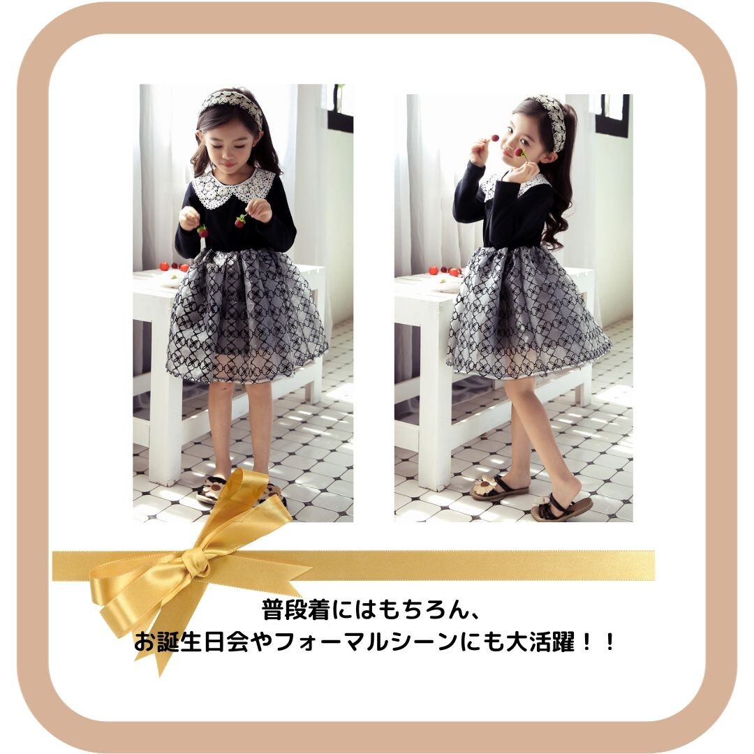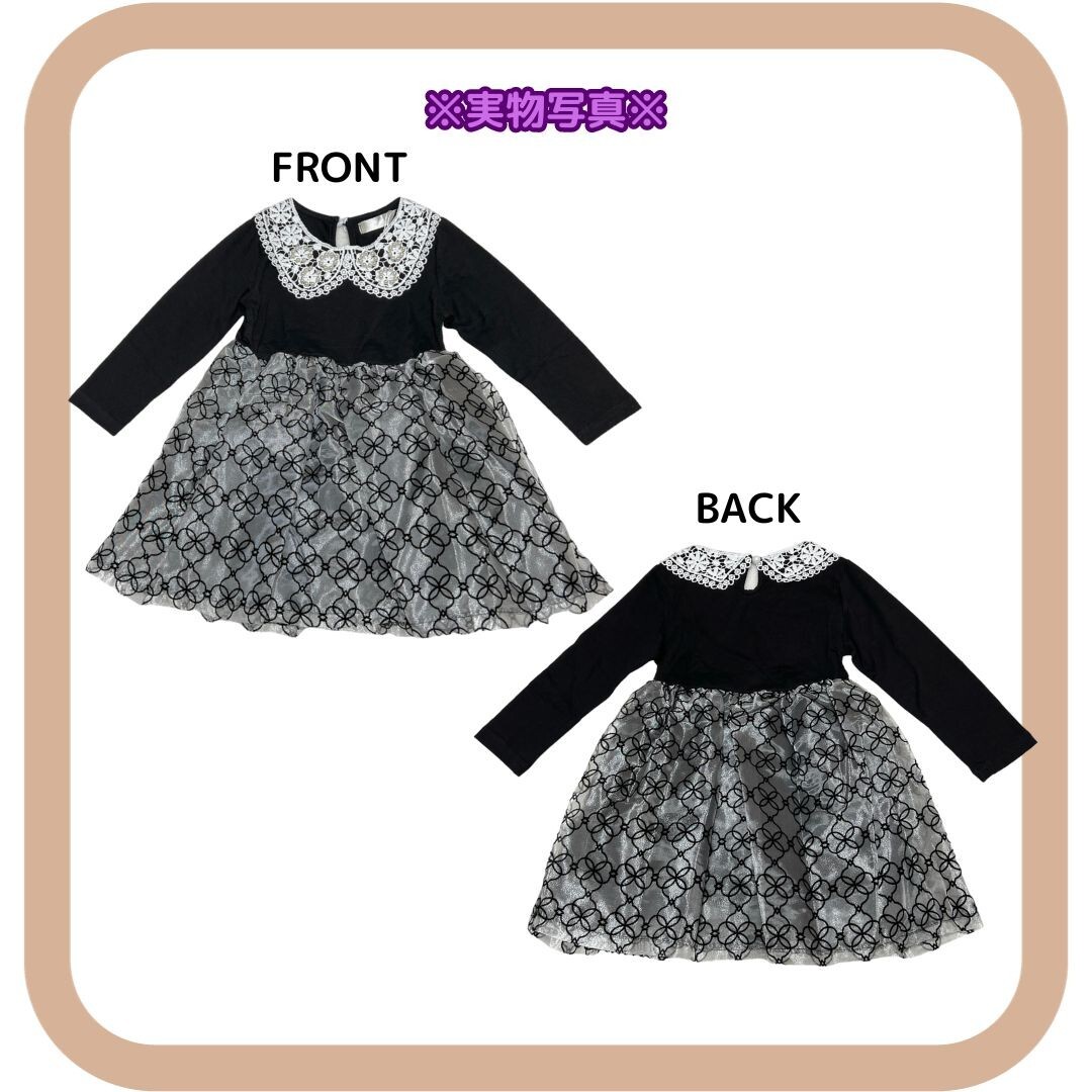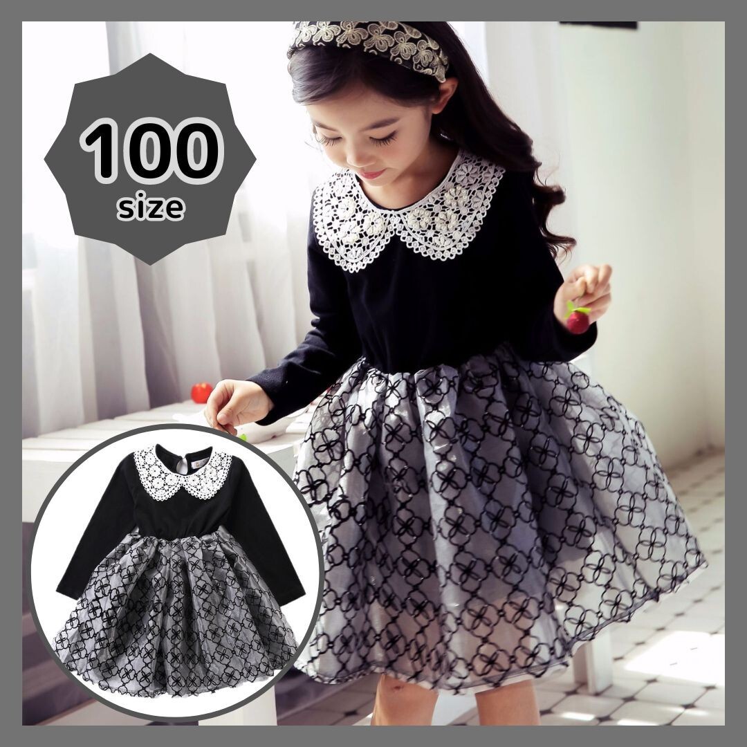 女の子 100 ドレスワンピース ドレス フォーマル 結婚式 レース襟 チュール 発表会 子供服 キッズ おしゃれ 可愛い Aライン 丸襟 レース 黒