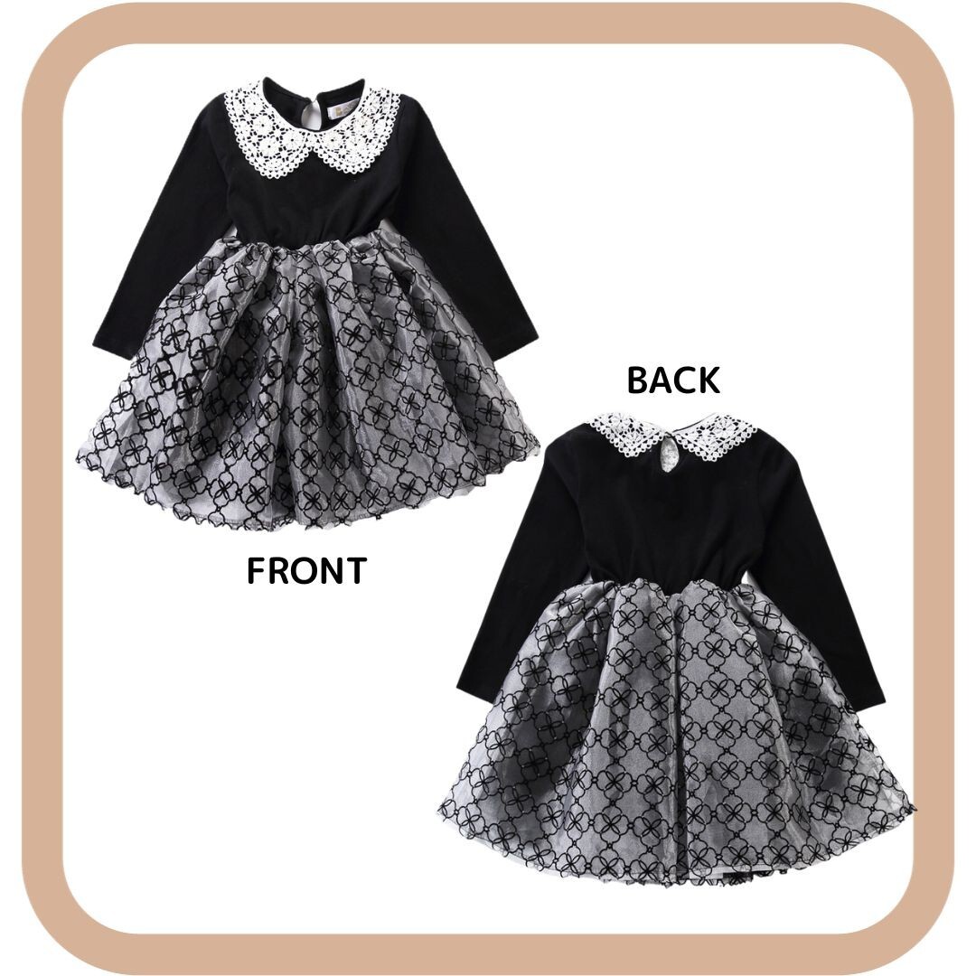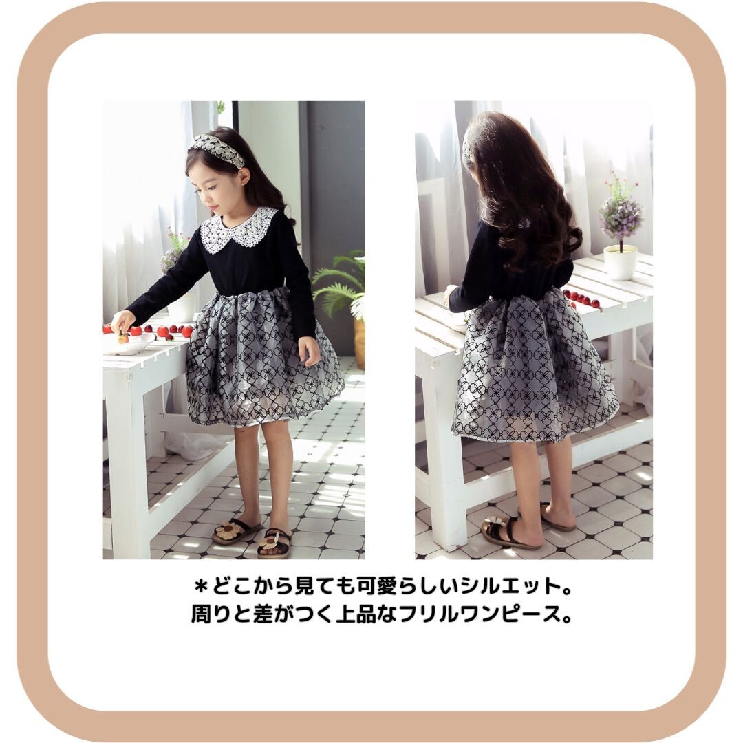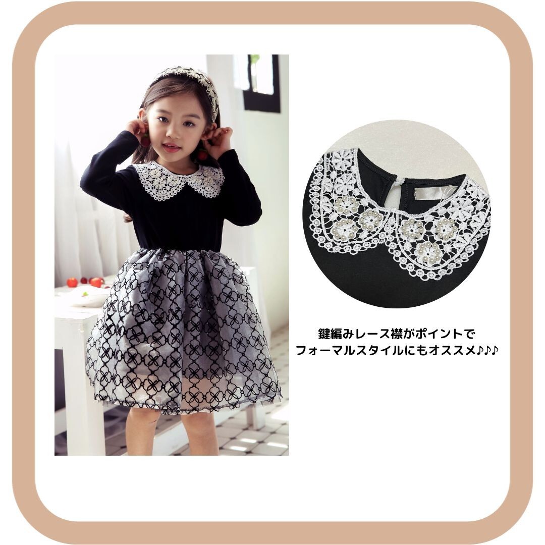 女の子 100 ドレスワンピース ドレス フォーマル 結婚式 レース襟 チュール 発表会 子供服 キッズ おしゃれ 可愛い Aライン 丸襟 レース 黒