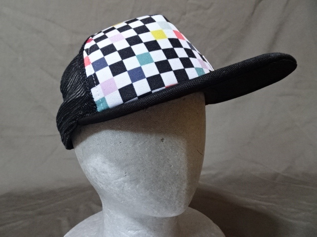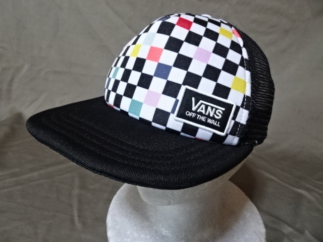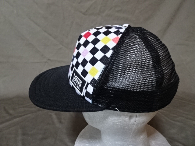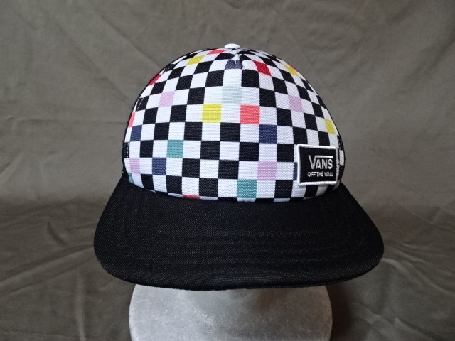 ◆ 激レア USA購入 人気アメカジブランド バンズ【VANS】 ロゴ刺繍ワッペン付 額部分チェッカー柄 メッシュキャップ 中古品 ◆