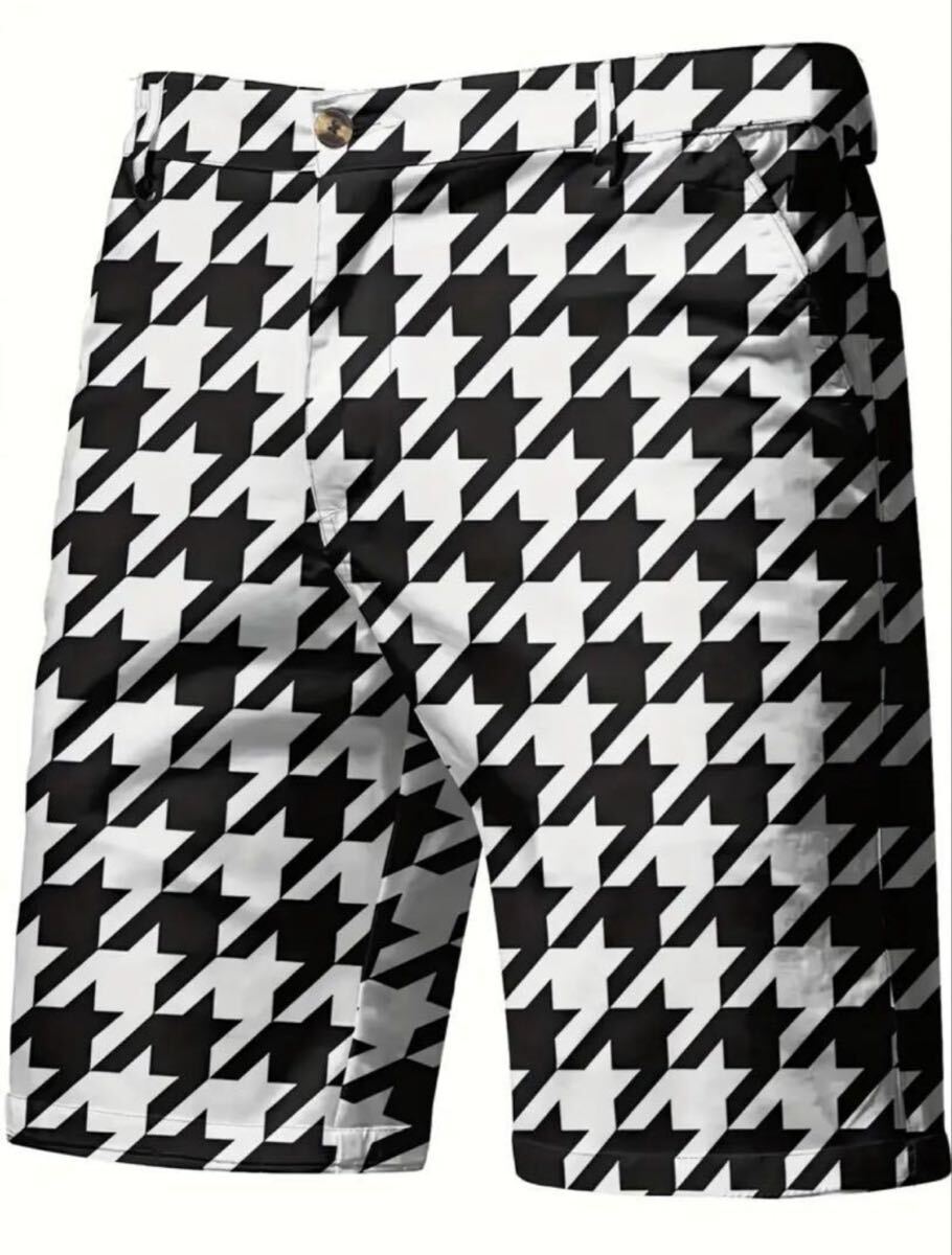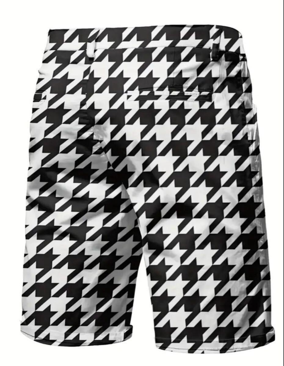#ゴルフ #GOLF #メンズ #メンズウェア #ウェア #ゴルフウェア #短パン #パンツ #ハーフパンツ #ショートパンツ #春 #夏 #秋 #春ウェア #夏ウェア #秋ウェア #春服 #夏服 #冬服ハウンドトゥース柄のカジュアルショートパンツ、バックポケット付きで実用的。