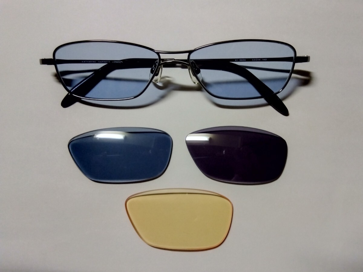 今回カスタムオーダーしたカラーレンズ3セットをお付けします。レンズのカラーが変わるとガラッと印象が変わるので、気分や用途に合わせて幅広い使い方ができます。