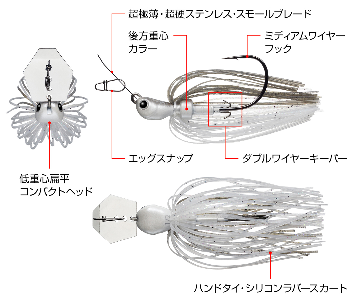 ●オリジナルと同ウエイトでもコンパクトだからさらに良く飛ぶ。さらに、ジャックハンマー初となる1/4ozをラインナップし浅い場所を釣りやすい。プレッシャーにも強く、オカッパリにも有効なスペシャリスト的存在。