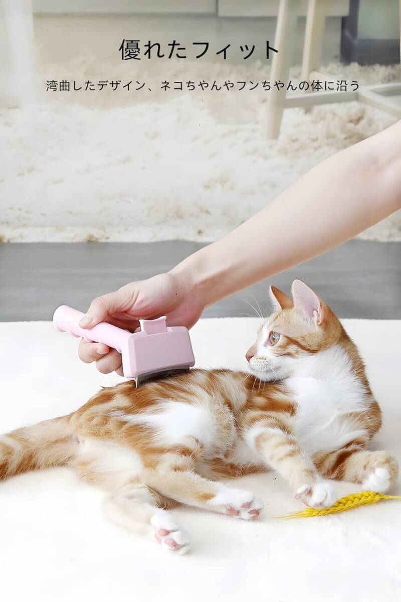 BYBO 猫ブラシ 抜け毛取り ボディラインにフィット 犬ブラシ ペット用ブラシ 犬猫通用 (ピンク) 2−16