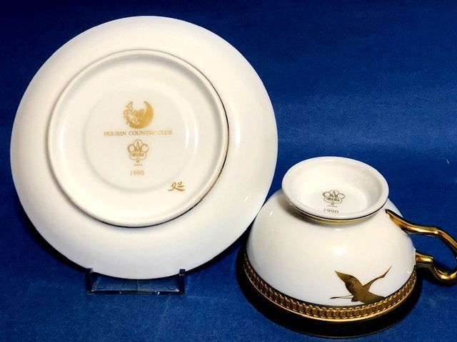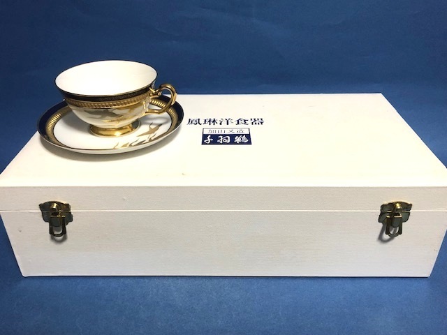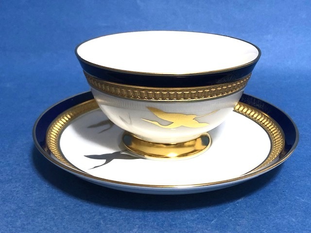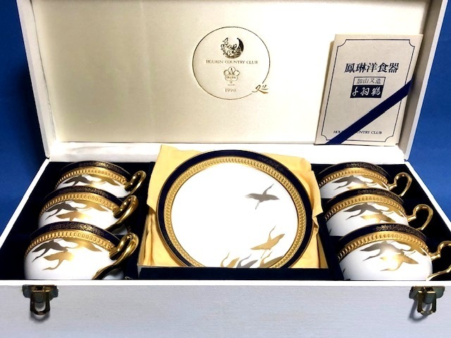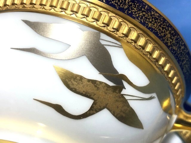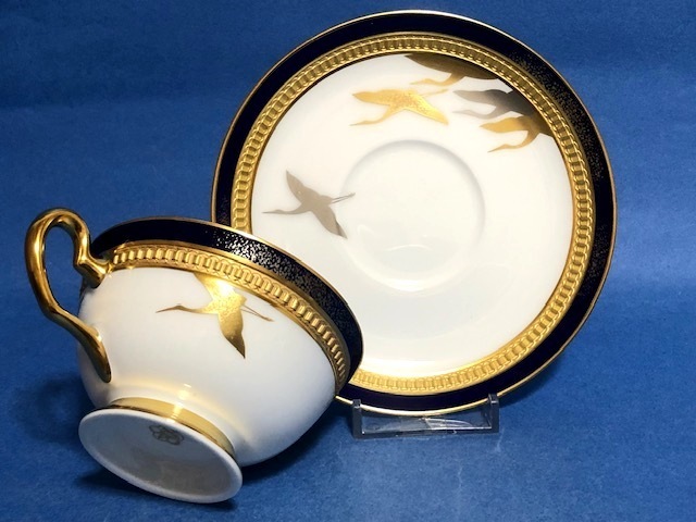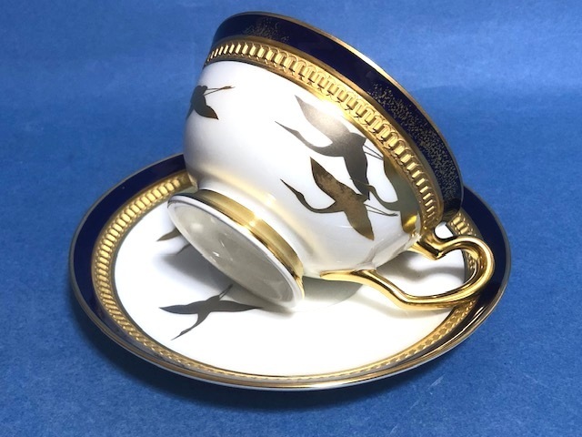 ◎大倉陶園 千羽鶴 加山又造 限定品 瑠璃エンボスティーカップ&ソーサー6客セット 金銀鶴 「鳳琳洋食器」◎共箱・共布